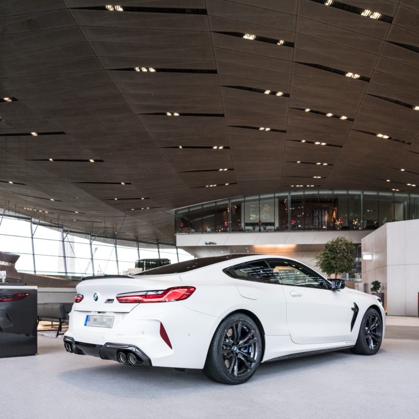 The M8 in question is painted in Alpine White and comes in the Competition guise which brings a series of upgrades over the standard car. For starters, there are a series of M Performance parts in carbon fiber which further enhance the sporty looks of the M8. There is a front splitter and side gills made of carbon fiber, along with the lip on the trunk and the diffuser.
