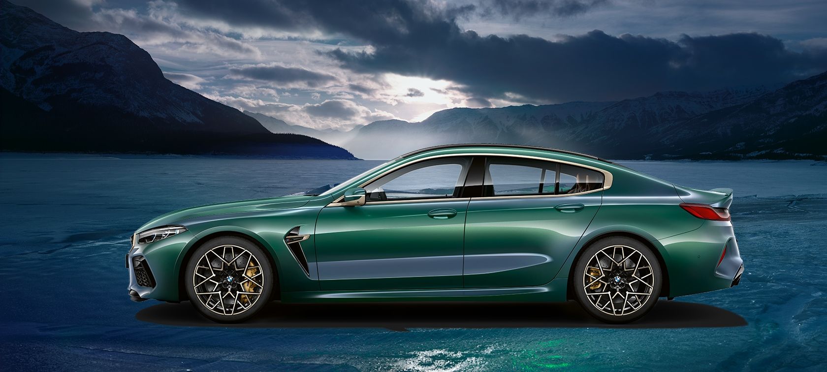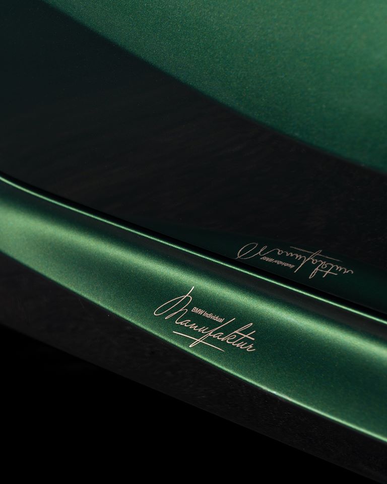 The models are featured in the BMW Individual Aurora Diamant Green color, which resembles the Saleve Vert shade from the Concept M8 Gran Coupe of 2018. The exterior window and grille ornaments are featured in BMW Individual Aluminum Line which embodies a trace of gold to add to the striking look of the car.