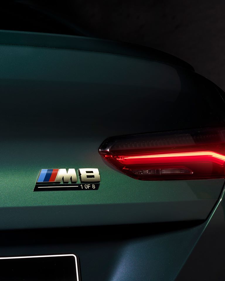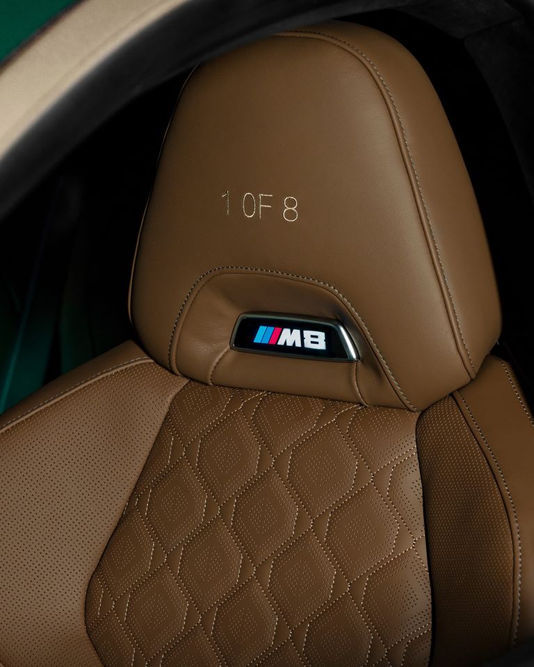 At the rear end, the shiny black M8 logo sports the “1 to 8” inscription which is placed right beneath. The same “1 to 8” tagline is repeated on the exterior B pillars of the car, on the seat headrests and on the floor mats.