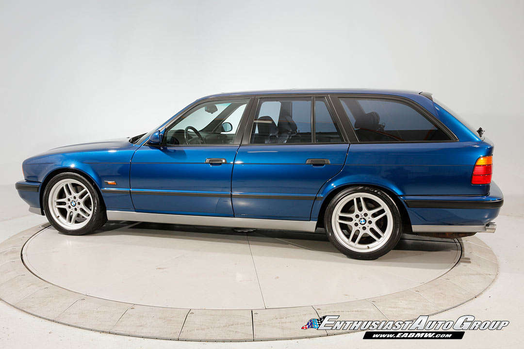 This is a 1994 BMW E34 M5 Touring model. It has only 40,000 miles on the clock, it’s dressed up in Avus Blue and is, of course, a manual. Have I just described your dream car? Good. This beauty is absolutely stunning. It looks impeccable for its age and is very rare. Why? Because even though BMW offered the E34 M5 in Touring guise, the take rate wasn’t that high. As a matter of fact, they only made 891 of them, so this is, by accident not by design, a very rare car.