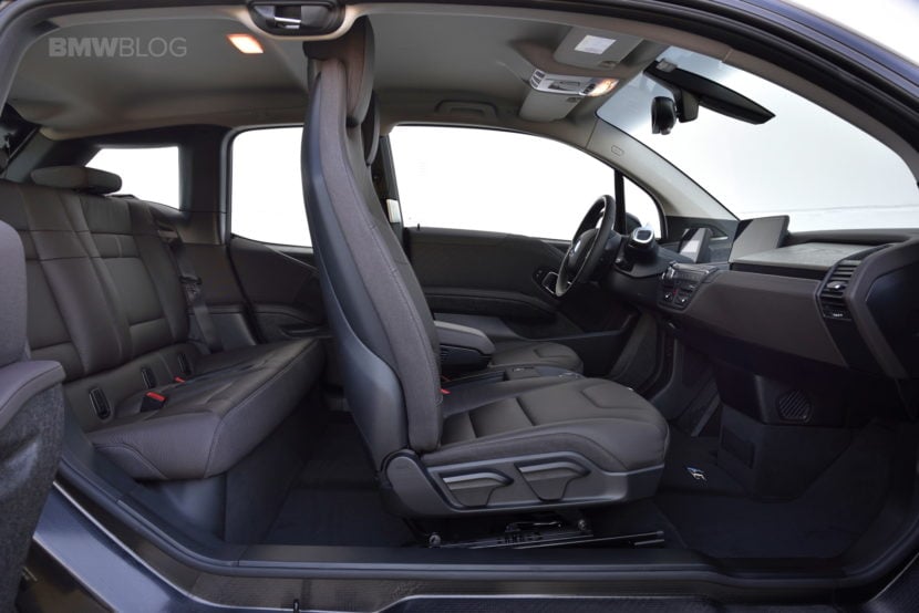 Now let’s put those numbers in the context of the BMW i3’s interior space and back seat space. According to official BMW i3 technical documents, the back seats offer 37.2 inches in height while the rear shoulder room is 49.2 inches. The legroom is rated at 31.9 inches. The i3 is also a strict four-seater and has no seatbelt in the middle of the back seat. Each rear seat has a complete set of LATCH connectors to work with your car seat.