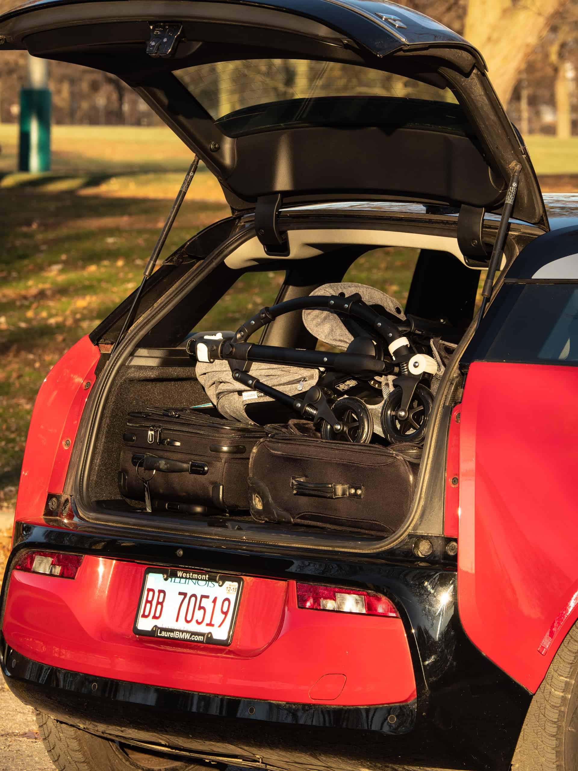 If your only goal is to use the BMW i3 as a city car and at most you need space for the car seat and stroller, then the BMW electric vehicle provide enough interior space. With some cubic feet to spare.