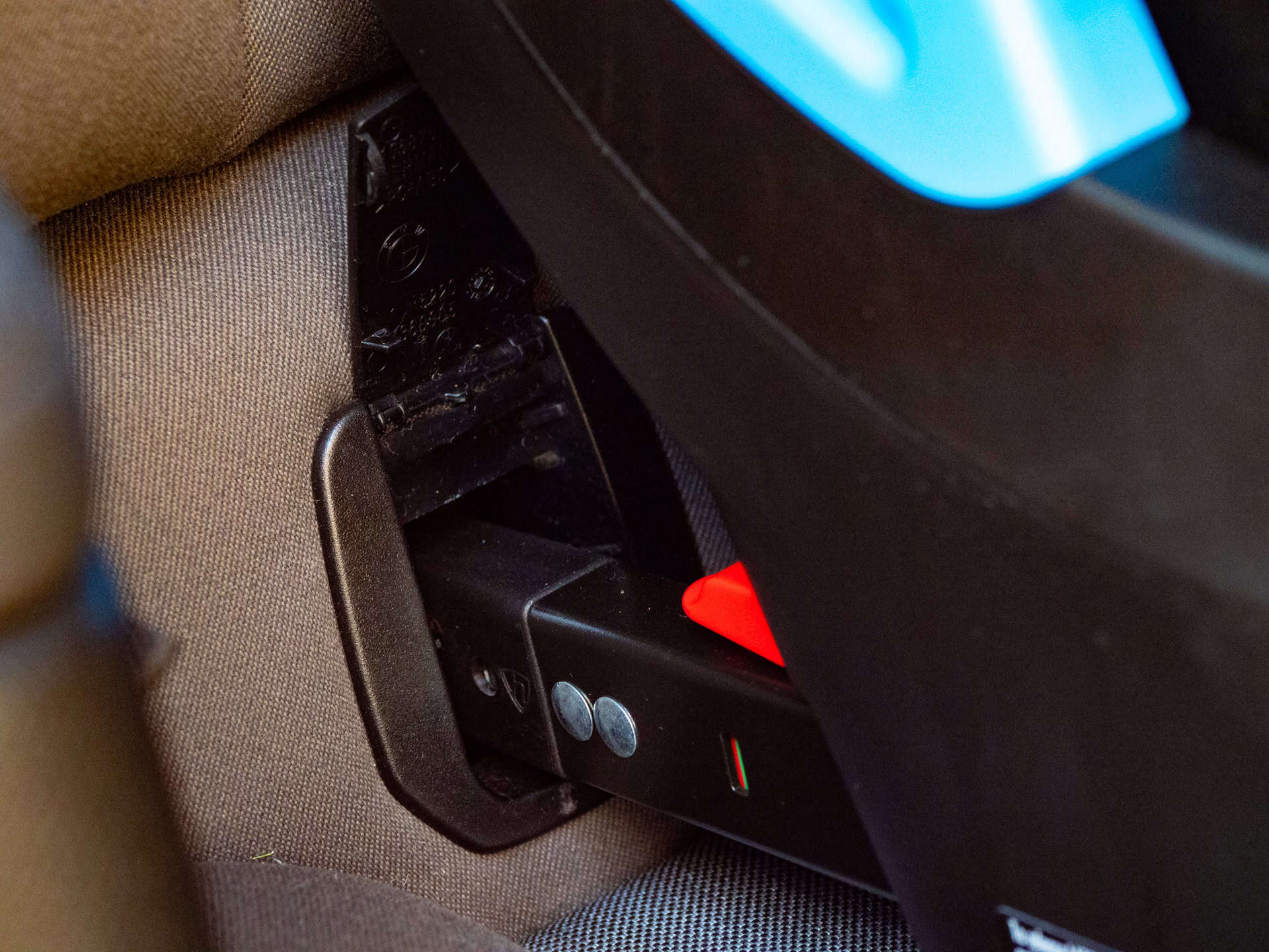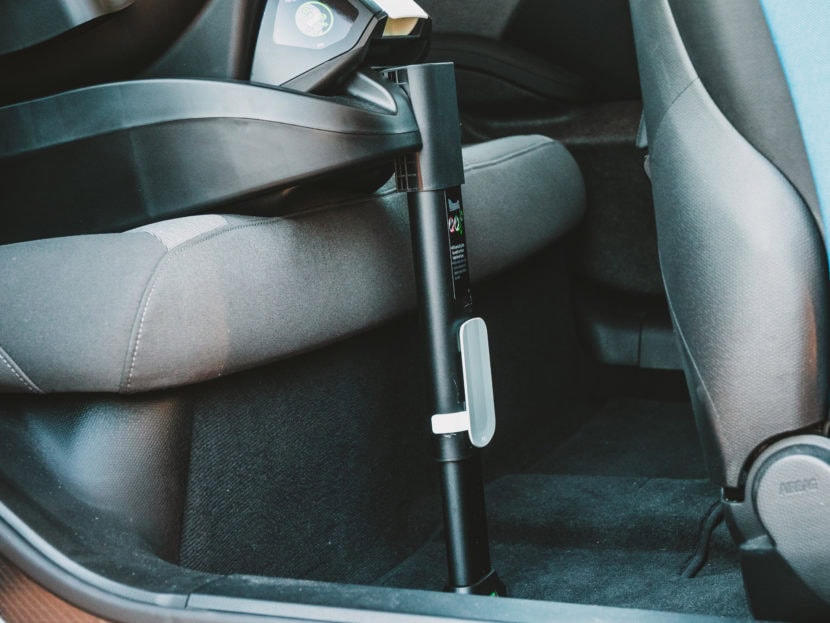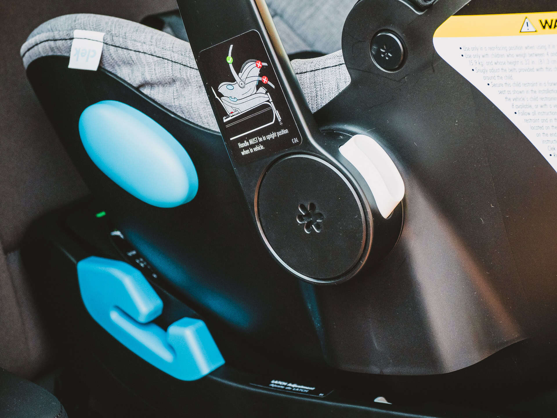 I also like the fact that Liing’s color-coded base provides an immediate visual cue so you know if the seat is installed properly or not when connecting a LATCH connector or closing the belt tensioner or adjusting the load leg. The recline adjustment was designed to allow for easy recline adjustment in a wide variety of vehicles – and takes the guesswork out of another step of the installation process. The fabric on the car seat is almost the same shade as the cloth in the BMW i3, so the Liing already looks like is part of the car.