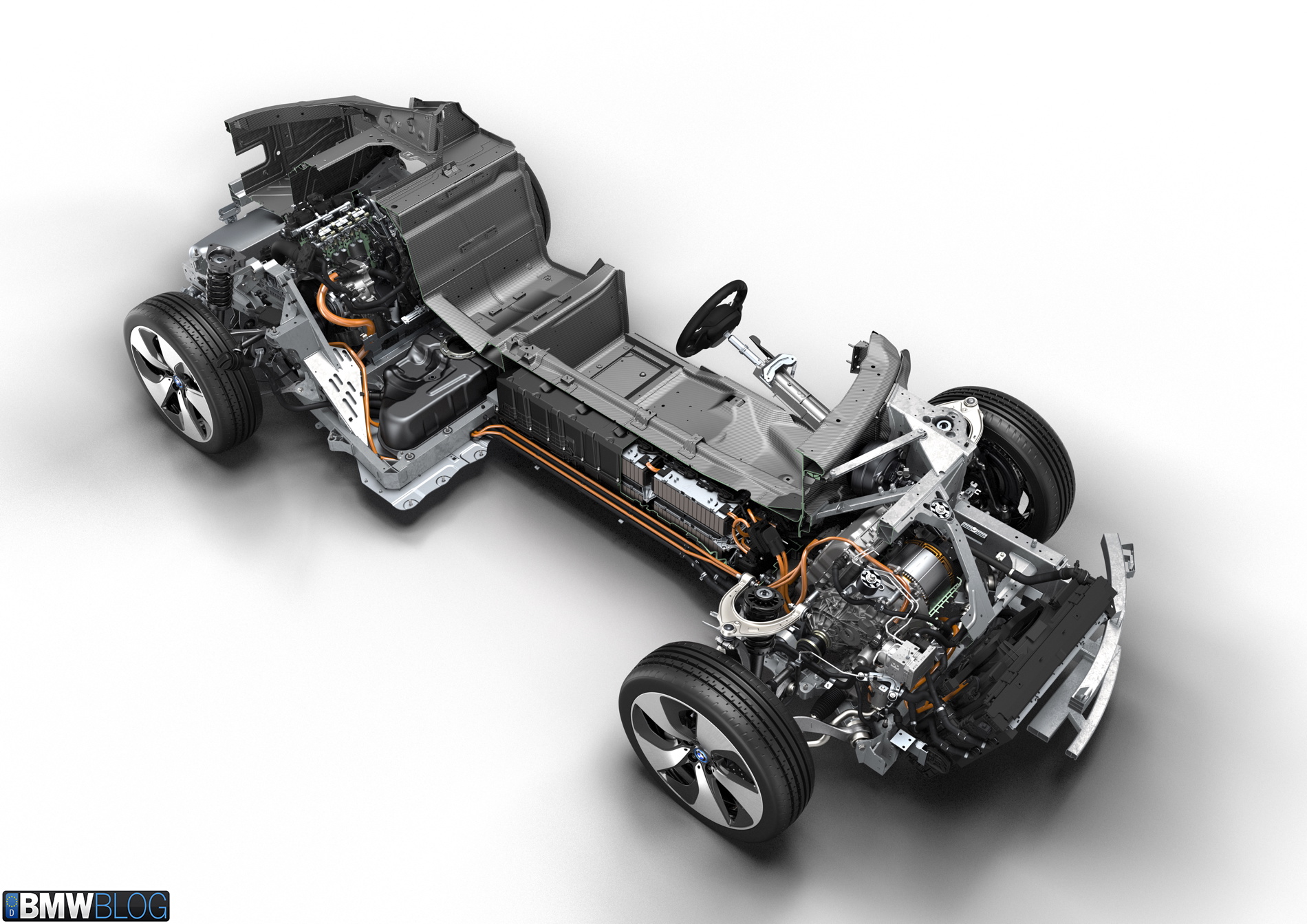 It also housed two electric motors – one where the torque converter normally slots in a automatic transmission car and a completely separate electric motor, similar to, if not the same as, the i3’s, in the nose. There were two complete and separate drivetrains in the i8, the combo gasoline engine and electric motor in the back and the stand alone electric motor in the nose.