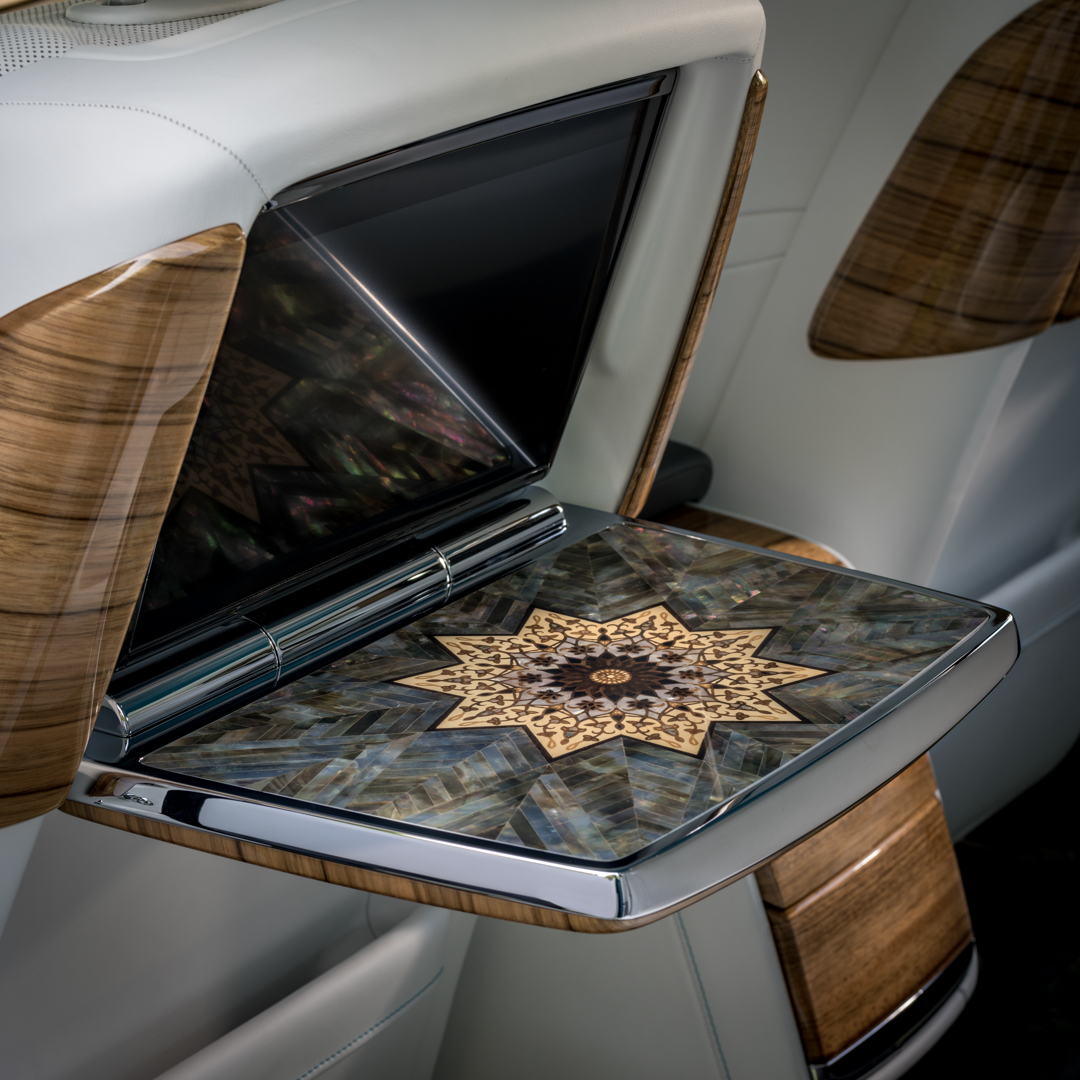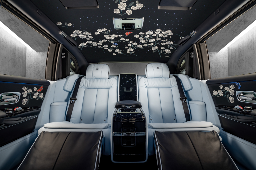 An entrepreneur from Stockholm wanted a Rolls-Royce Phantom that enveloped his passengers in flowers. The result of that vision was the “Rose Phantom”, a Phantom which featured one-million embroidered stitches inside the cabin. A stunning rose motif was created from those million stitches, with the star flower of the cabin being the special rose that was bred for Rolls specifically by Harkness Roses. That very rose is actually the same sort featured in the garden at Rolls’ home in Goodwood. The famous Starlight headliner illuminates the roses and a rose motif is featured in the glass “Gallery” dashboard design. It’s a stunning car that really shows off the level of craftsmanship the Rolls-Royce Bespoke team is capable of.