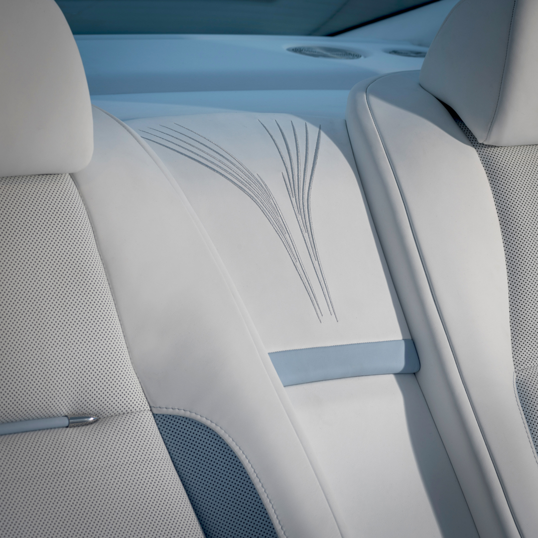 The Wraith “Eagle VIII” honors the first-ever, non-stop transatlantic flight by Alcock and Brown in June, 1919, which was powered by Rolls-Royce Eagle VIII engines. Rolls created 50 of these unique machines, which feature a unique starlight headliner that replicates the night sky above them during their trip in June, 1919. The flight path and constellations are embroidered in brass thread and the exact moment the pair left the clouds, also illustrated in embroidery, and navigated by the stars is indicated by a red fiber-optic light. Brass speaker covers depict the estimated 1,880-mile flight distance whilst a brass plaque engraved with Winston Churchill’s stirring quote commending the pair’s remarkable achievement adorns the driver’s door. The Smoked Eucalyptus fascia, vacuum metalized in gold and inlaid with silver and copper, depicts a birds-eye view of the Earth at night, showing a light map of roads and homes glittering below.