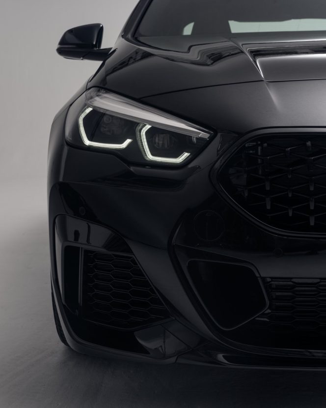 The result is actually a quite stunning BMW 2 Series Gran Coupe which hasn’t been often loved by the pundits. The kidneys, exterior mirrors, air intakes, tailpipes and rear spoiler are black, and the details in Cerium Gray that are common to the M Performance models are omitted.