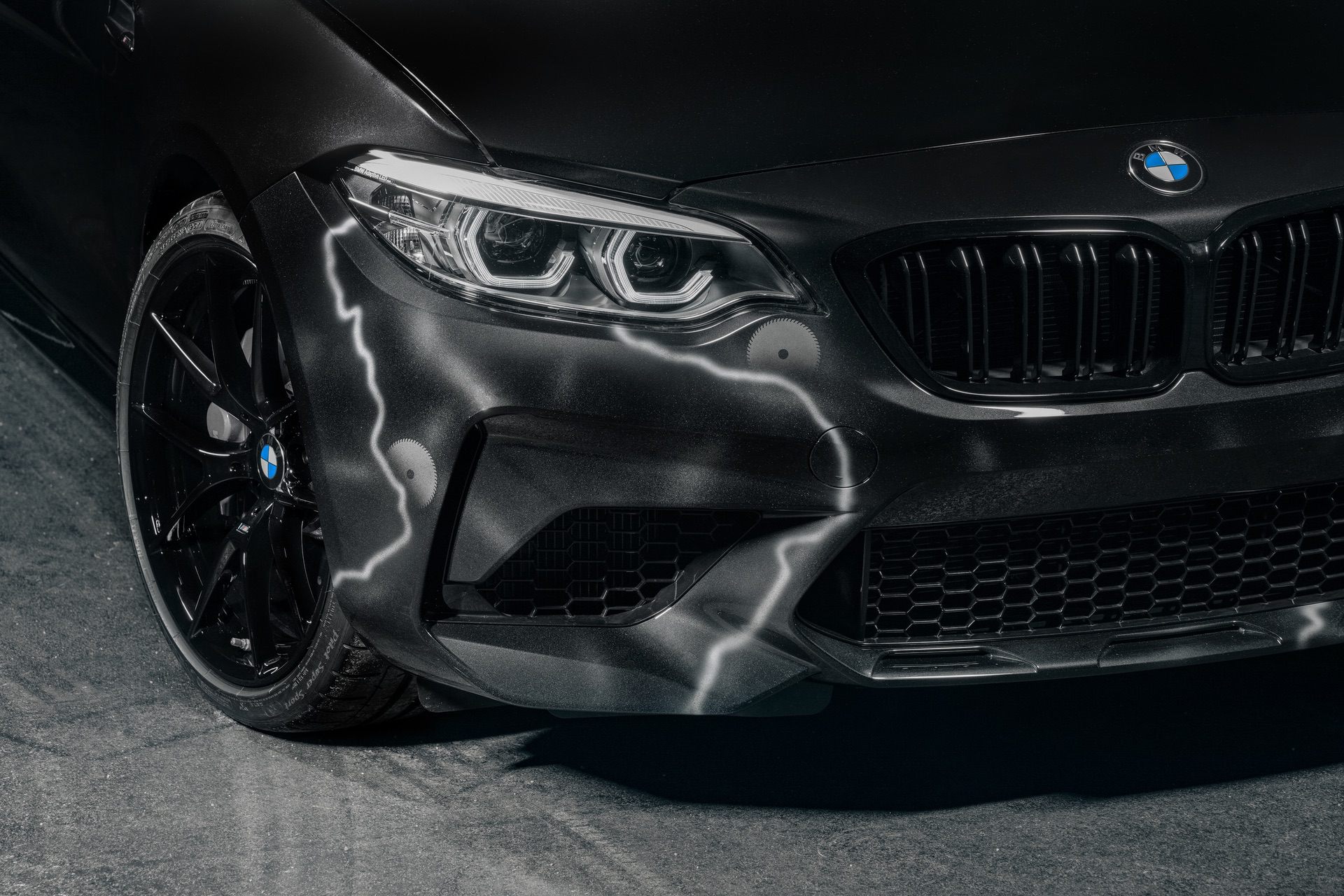 From the outside, the BMW M2 Edition designed by FUTURA 2000* is recognizable by the painted surfaces on the front and rear aprons and the side sills. Furthermore, each M2 Competition is fitted with 19-inch jet black light alloy wheels.
