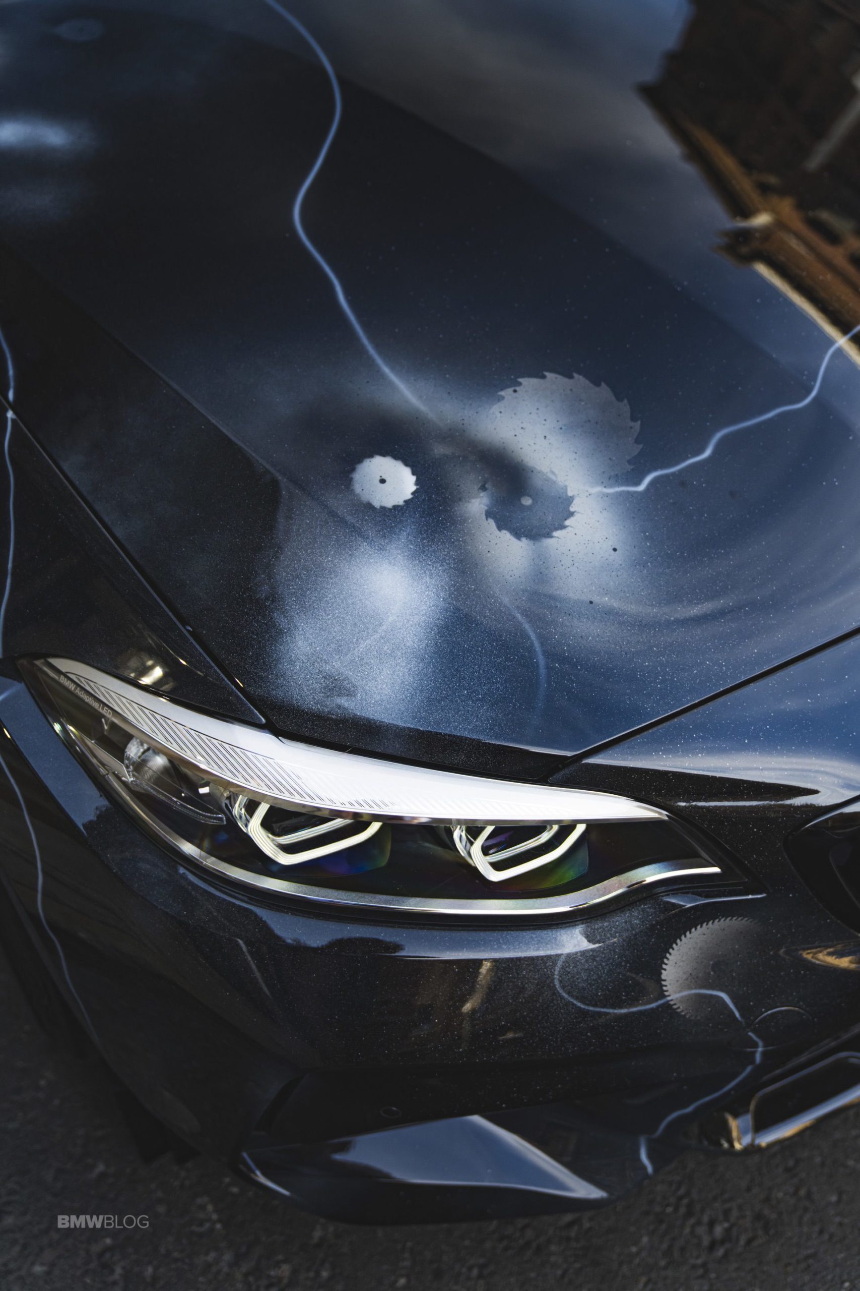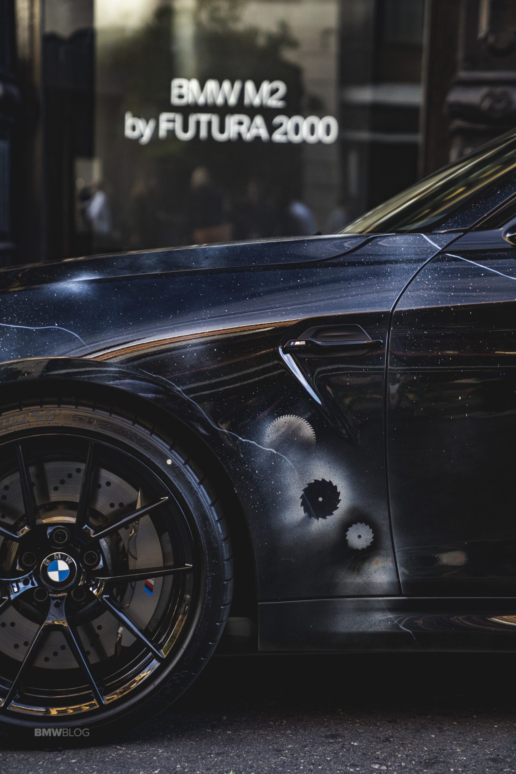 FUTURA’s work will focus on both the exterior and interior of the BMW M2 Competition. Inside, there are trim strips on the instrument panel and the center console of each vehicle boast a special, individually created FUTURA 2000 design. The bi-colored, Dakota leather M sports seats in black and ivory white feature polar blue contrast stitching.