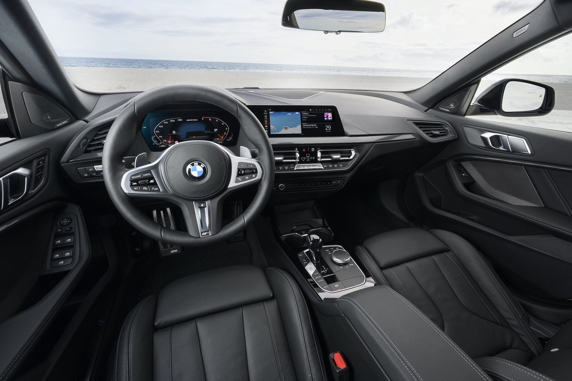 You can also tell that it’s catered to a younger audience from the inside. The cabin of the BMW M235i is very sporty looking and has some features that are specifically designed to appeal to millennials. For instance, the dashboard and door trim have a cool pattern on them but they’re also both back-lit.