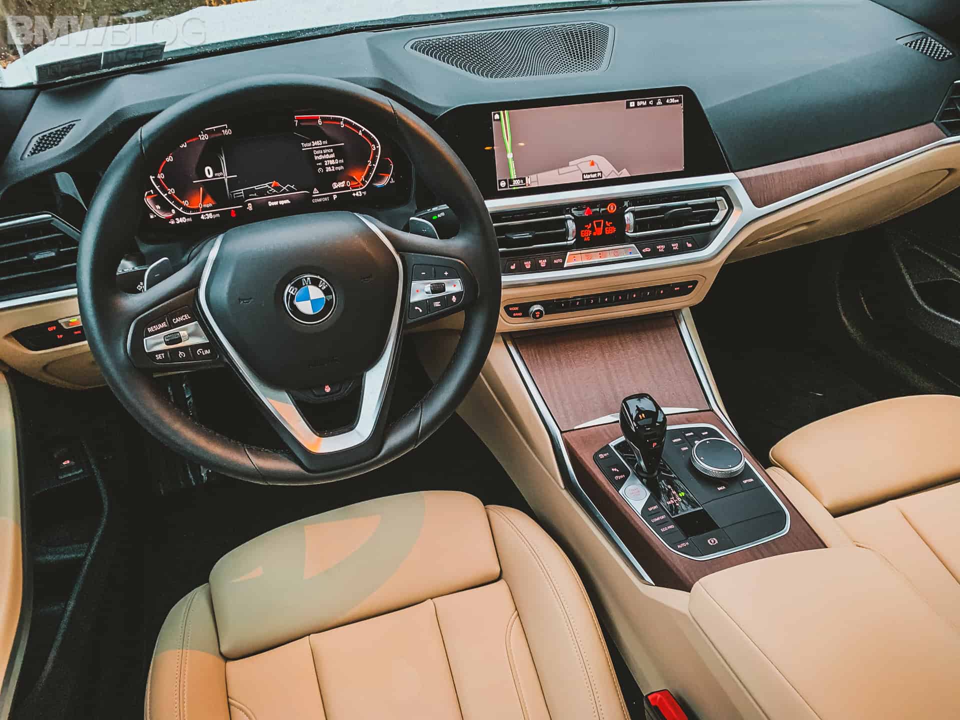 The E90 featured here had a navigation system, heated seats, a heated steering wheel as well as Bluetooth connectivity. Still, it pales in comparison to the tech found in the G20 we tested.