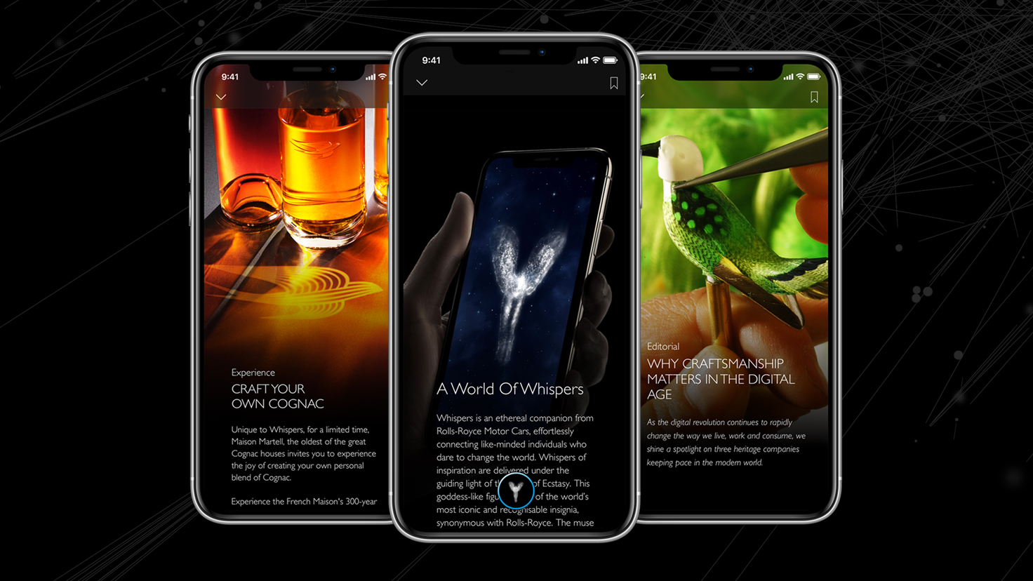 “It is with pleasure that today we introduce to the world an Application named Whispers; an innovative, digital House of Rolls-Royce, conceived and deployed over two years ago. Whispers is completely unique. It is a digital gateway to a fascinating world beyond, where the exceptional and the extraordinary come together and are tailored to meet the demands and tastes of our eclectic and highly valued community of clients. Whispers offers transformative experiences, rare and desirable products, whimsical treasures and exclusive Rolls-Royce previews that are curated by Rolls-Royce and delivered directly to the fingertips of our global community.” said Rolls-Royce CEO Torsten Müller-Ötvös, while presumably stroking a hairless cat.