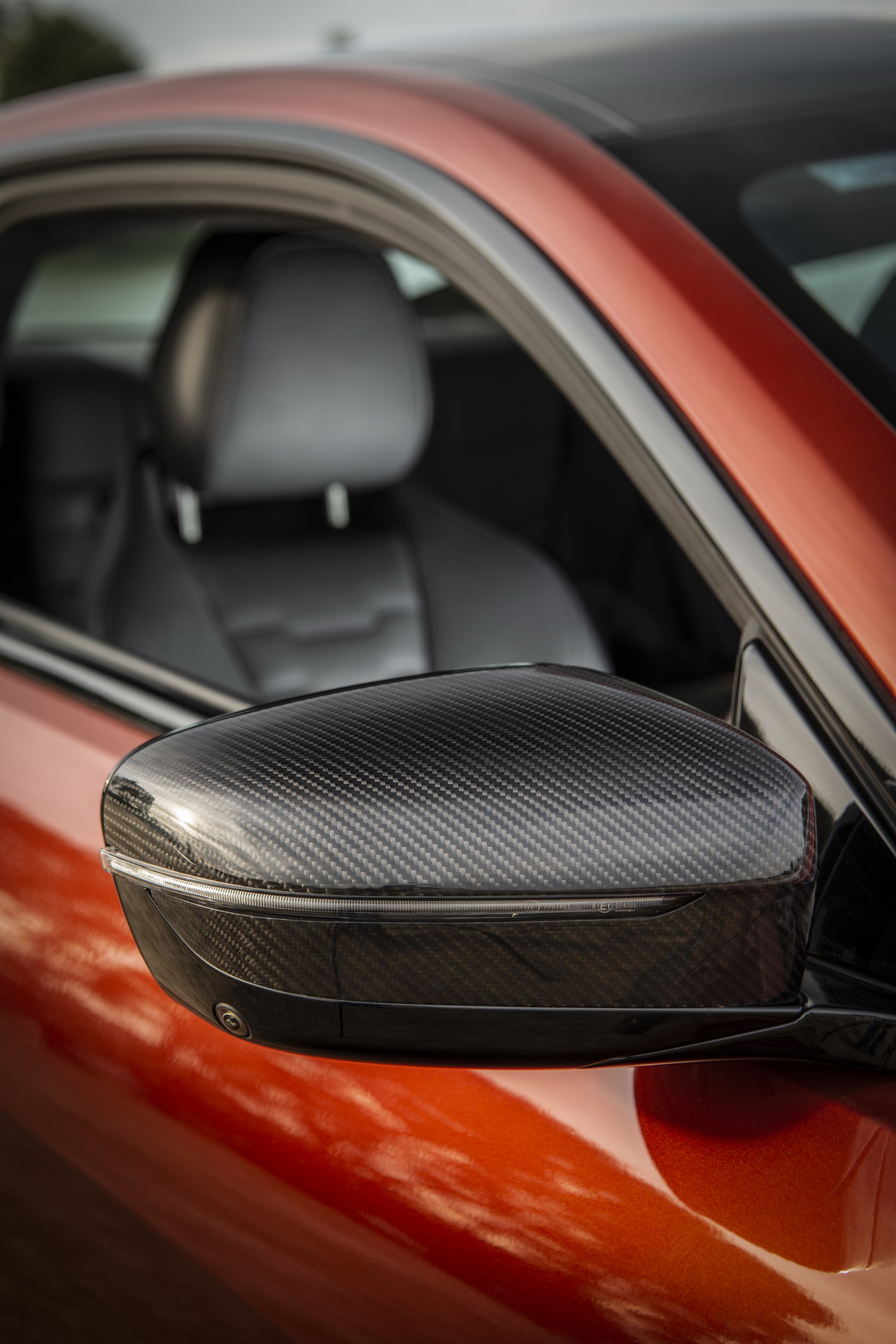 This BMW M850i Coupe is also enhanced with specific M Performance carbon fiber parts like the aerodynamic elements on the front air intakes, the exterior mirror casings, the discrete, trunk-mounted spoiler, the impressive rear diffuser and the CFRP, lightweight roof.