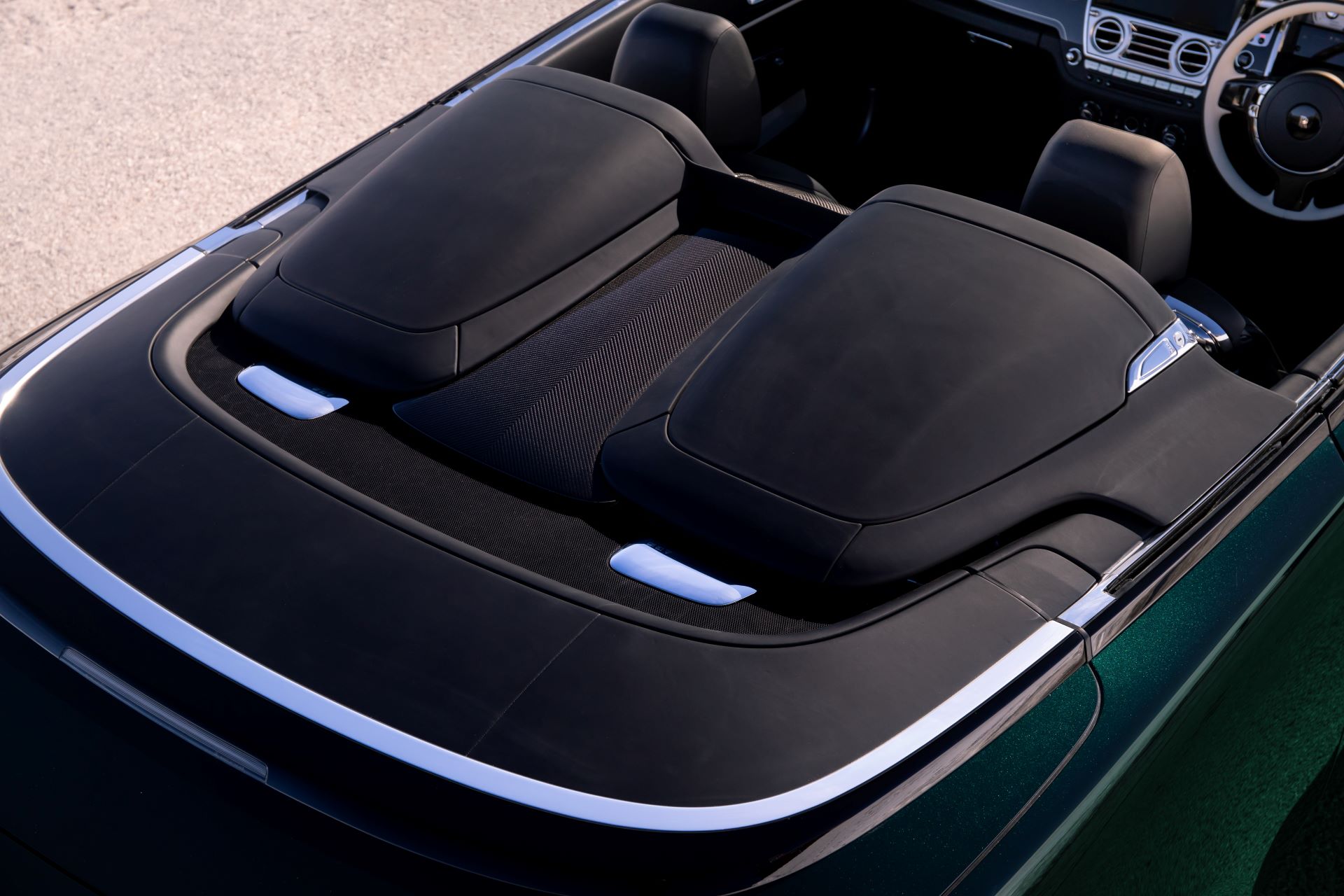 Thus, the Aero Cowling can be easily installed to enhance the silhouette and dynamism of the Rolls-Royce Dawn or can be removed to expose the rear seats when needed. Of course, to retract the cloth roof the Dawn, the Aero Cowling must be detached.