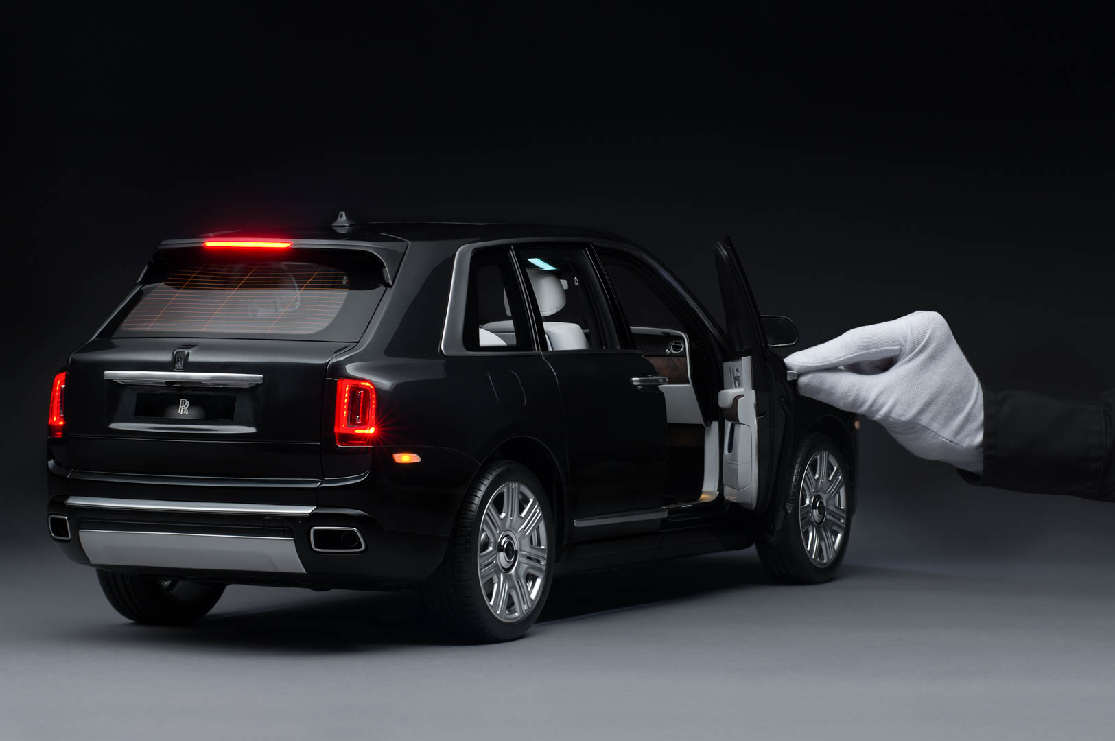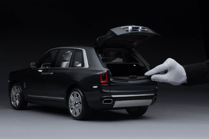 The entire replica is hand made and even hand painted. Even the coachline is painted by hand, just as it is on actual Rolls-Royce vehicles. If you’re a Cullinan customer, the replica can be color-matched exactly to your car or you can choose from almost 40,000 paint finish options. All of the lights on the replica are functional, just as they are on the real thing, and it even has illuminated door sills.