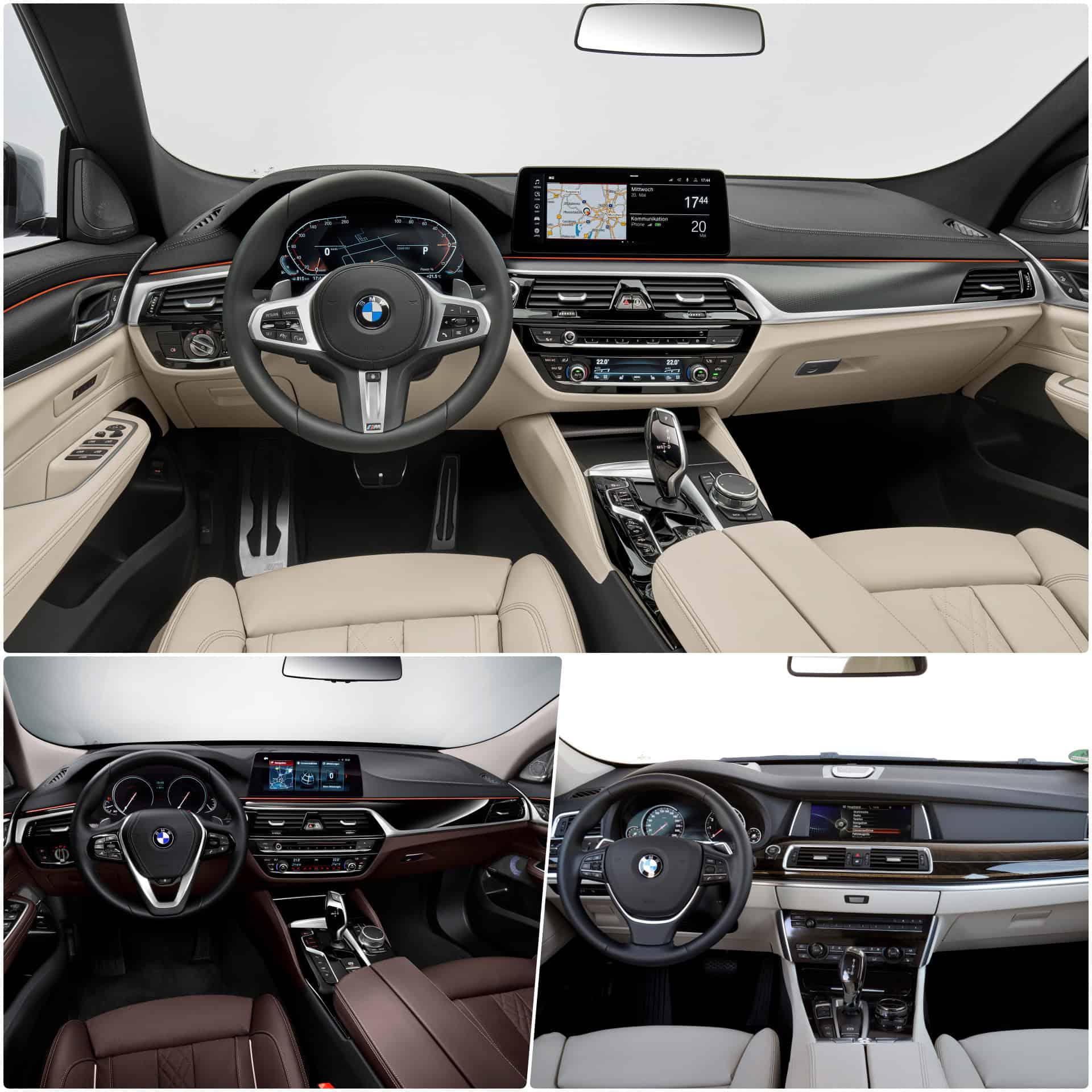 In terms of interior, we are talking again about opposite worlds, yet a clear connecting philosophy between the three models is traceable. The new 6 Series GT basically improved the quality and technology of the pre-LCI G32 generation.