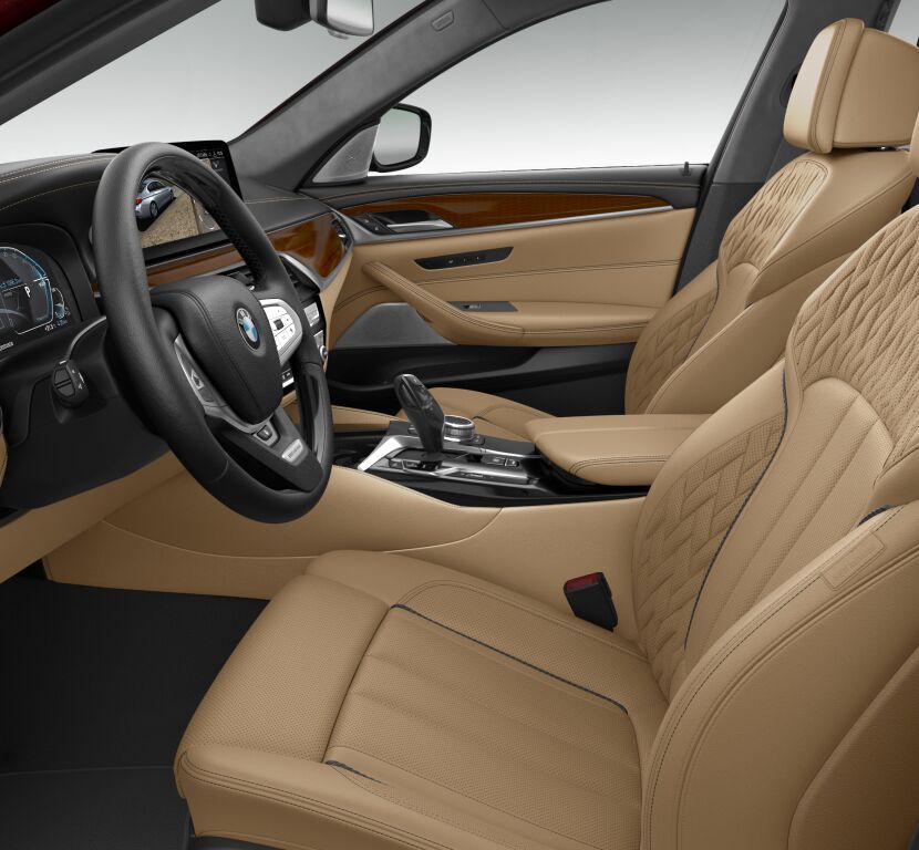 My top pick for the car’s paintwork is the elegant BMW Individual Aventurine Red II metallic, which is now offered for the first time in the new 5 Series generation.