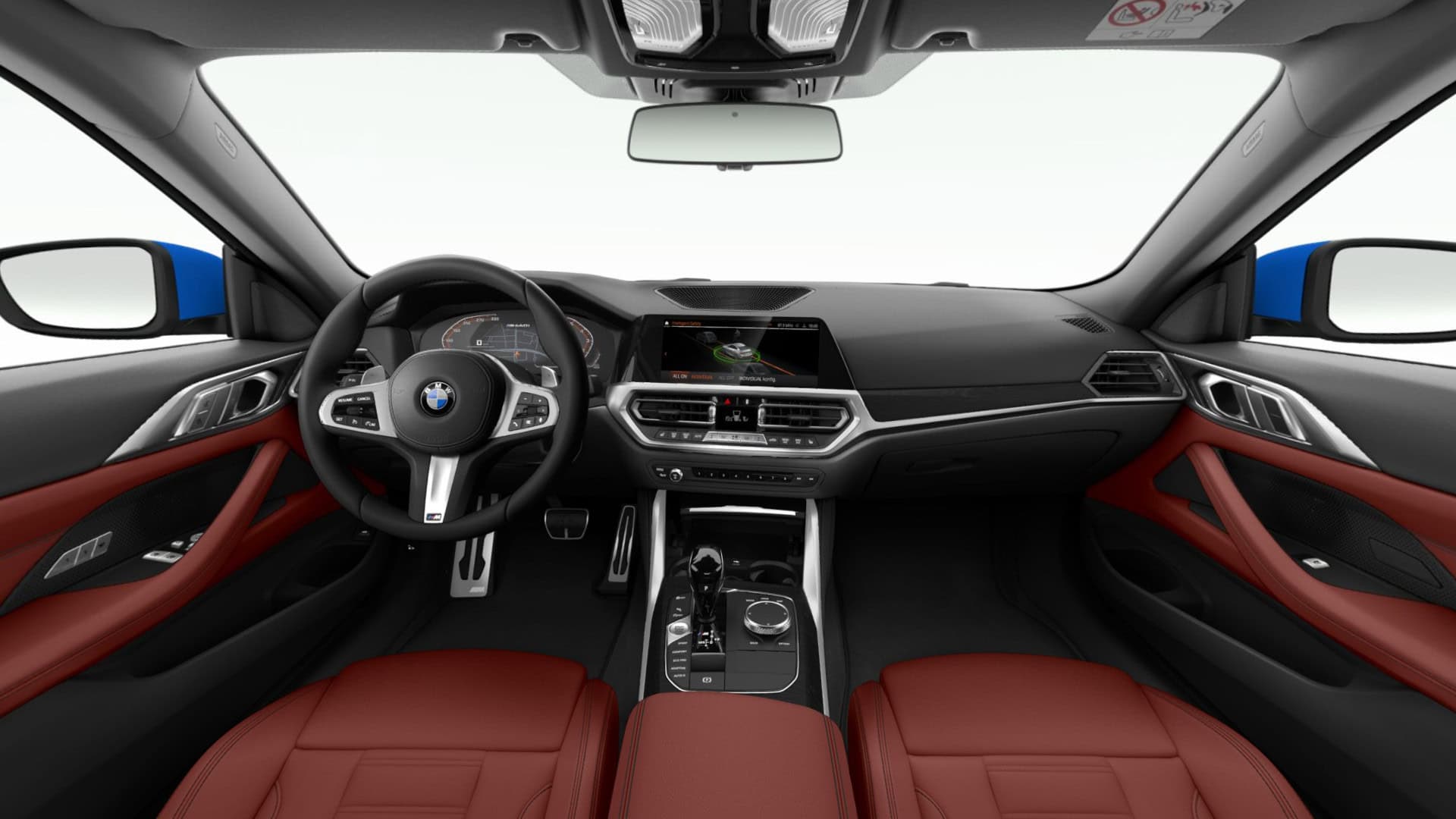 BMW M440i xDrive Coupe in Tanzanite Blue II, with Vernasca Tacora Red interior