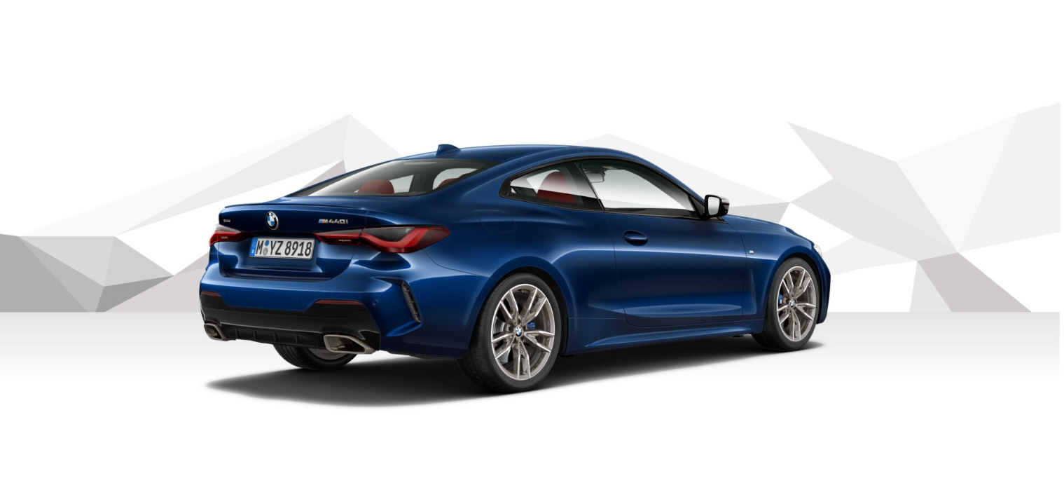 BMW M440i xDrive Coupe in Tanzanite Blue II, with Vernasca Tacora Red interior