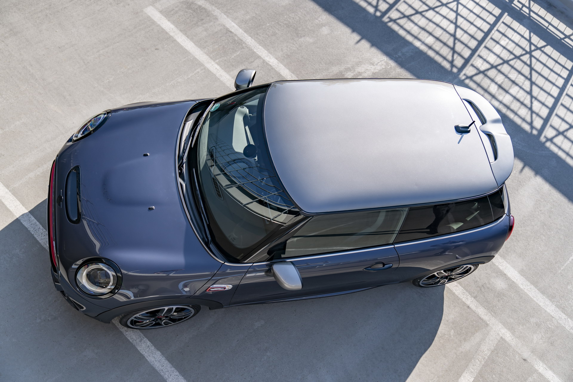 The new John Cooper GP Pack adds in the Racing Grey metallic paintwork with the Melting Silver contrasting color adorning the roof, the exterior mirror casings and the rear spoiler, which were exclusive to the range-topping MINI JCW GP till now.