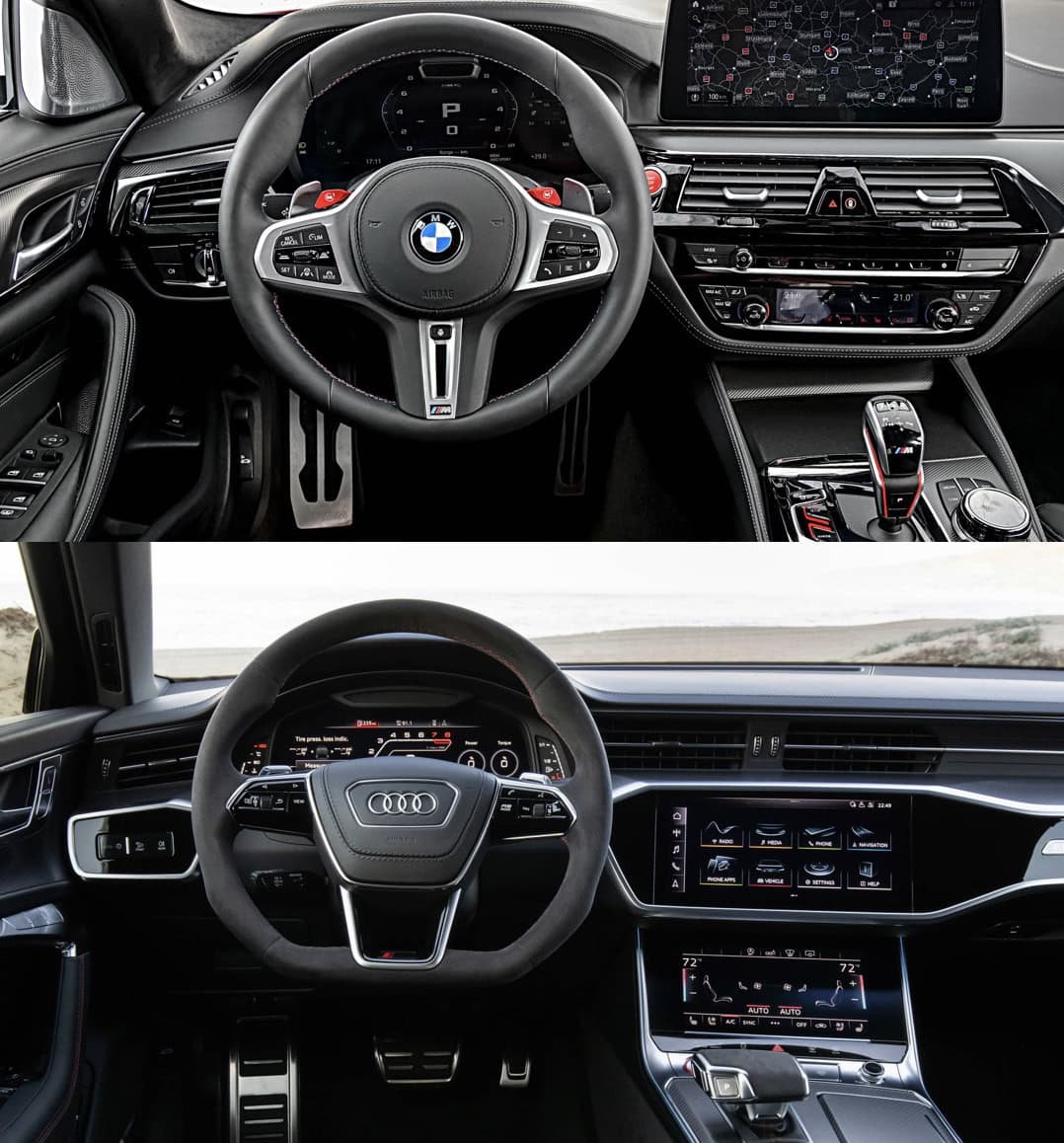 Up front, I think it actually can. The RS6 is certainly the more aggressive looking car, with its massive fender flares, razor sharp creases and angry headlights. But the BMW M5’s smooth, sophisticated styling and new headlight design make it very desirable in its own right. It’s more of a sleeper than the Audi RS6 but that can be a good thing, depending on who you ask.