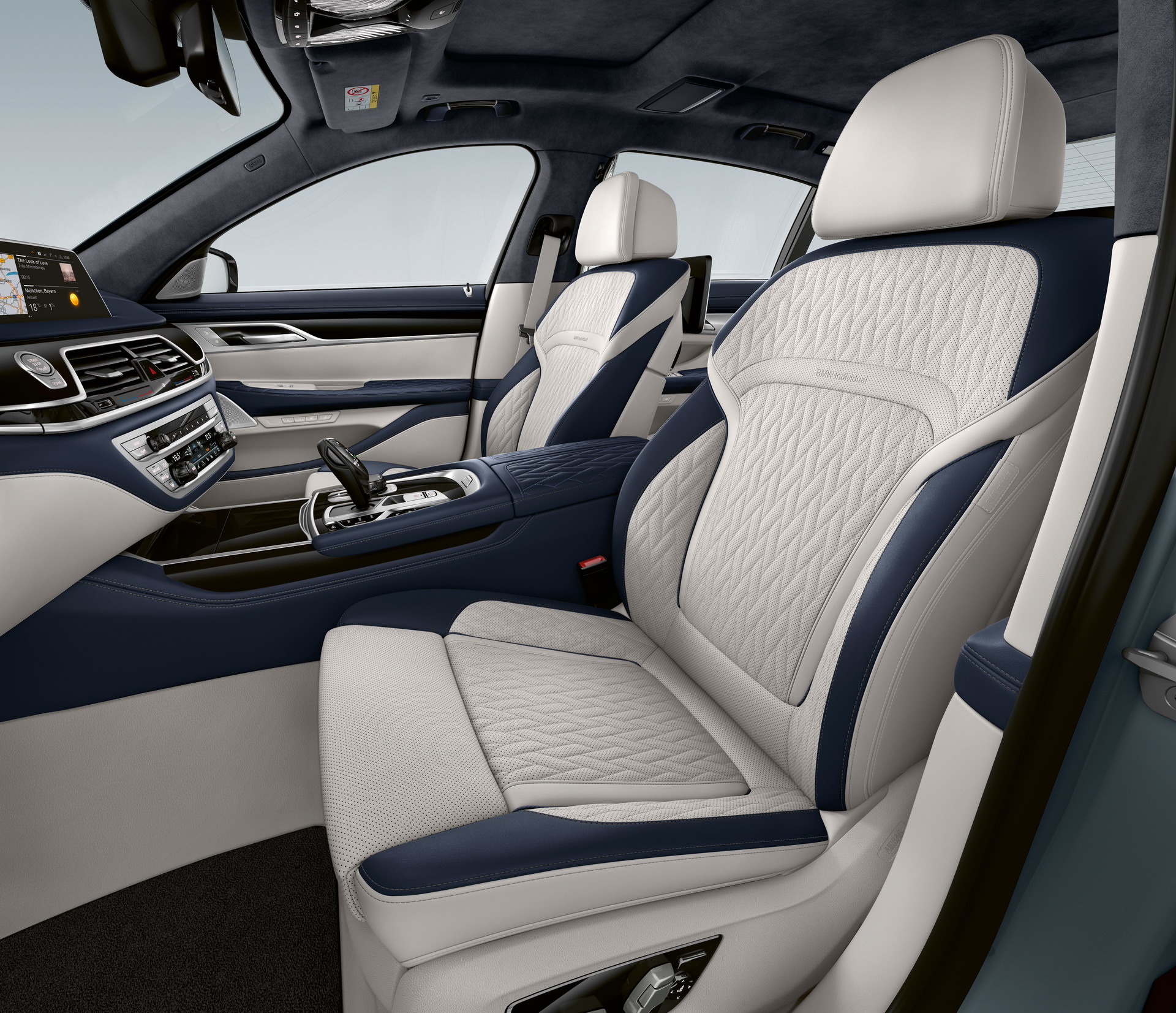 The visual appeal of the 7 Series will be further enhanced by the new Phytonic Blue and BMW Individual Frozen Bluestone metallic exterior paintwork. The premium atmosphere aboard the Bavarian luxury sedan will become even more exquisite thanks to the attractive BMW Individual Smoke White/Night Blue/Black Merino full-grain leather upholstery and the new BMW Individual leather steering wheel.