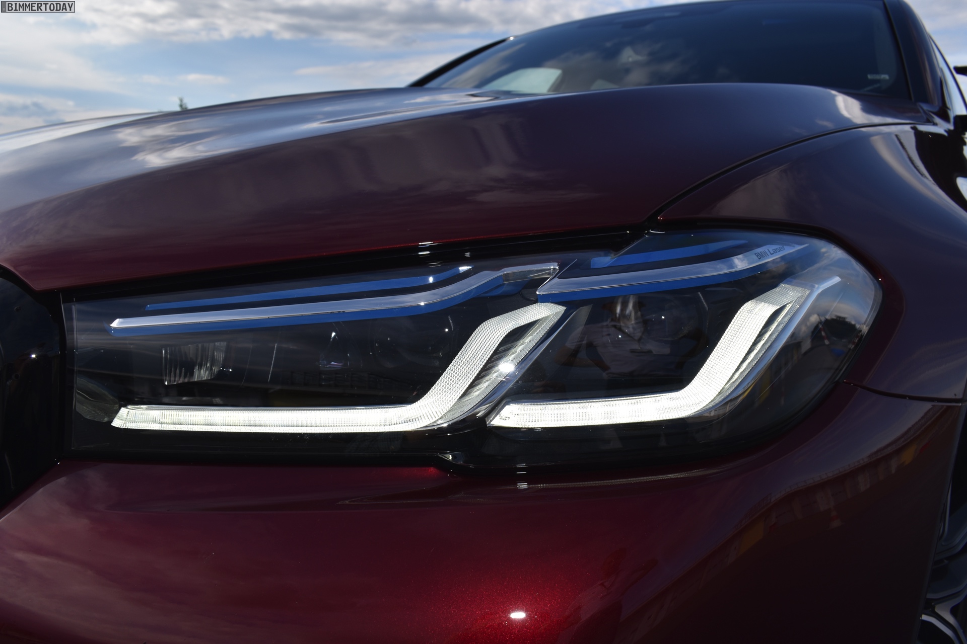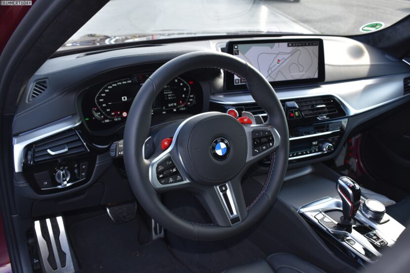 Courtesy of our sister-magazine Bimmertoday we bring you the first real life photos of the recently unveiled 2021 BMW M5 Facelift. In the paddock parking lot of the Sachsenring race track we see the BMW M5 Competition in the beautiful Aventurine Red metallic.