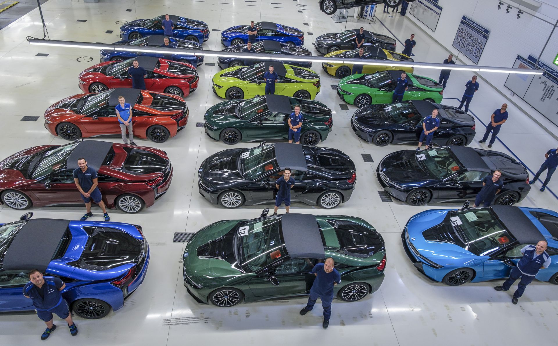 Today, the last batch of BMW i8 cars left the premises at the Leipzig plant where they were made, being picked up by the customers. Each of these last 18 cars were created in close collaboration with their future owners so that truly special combinations would come to life.