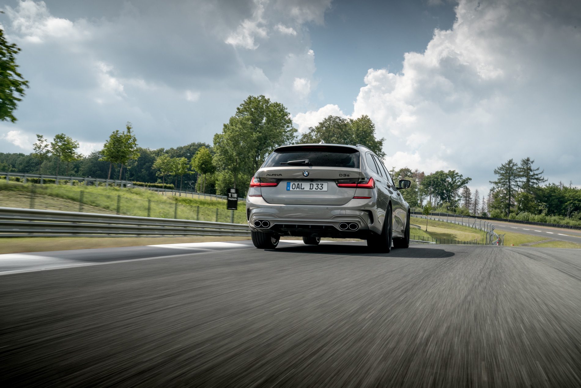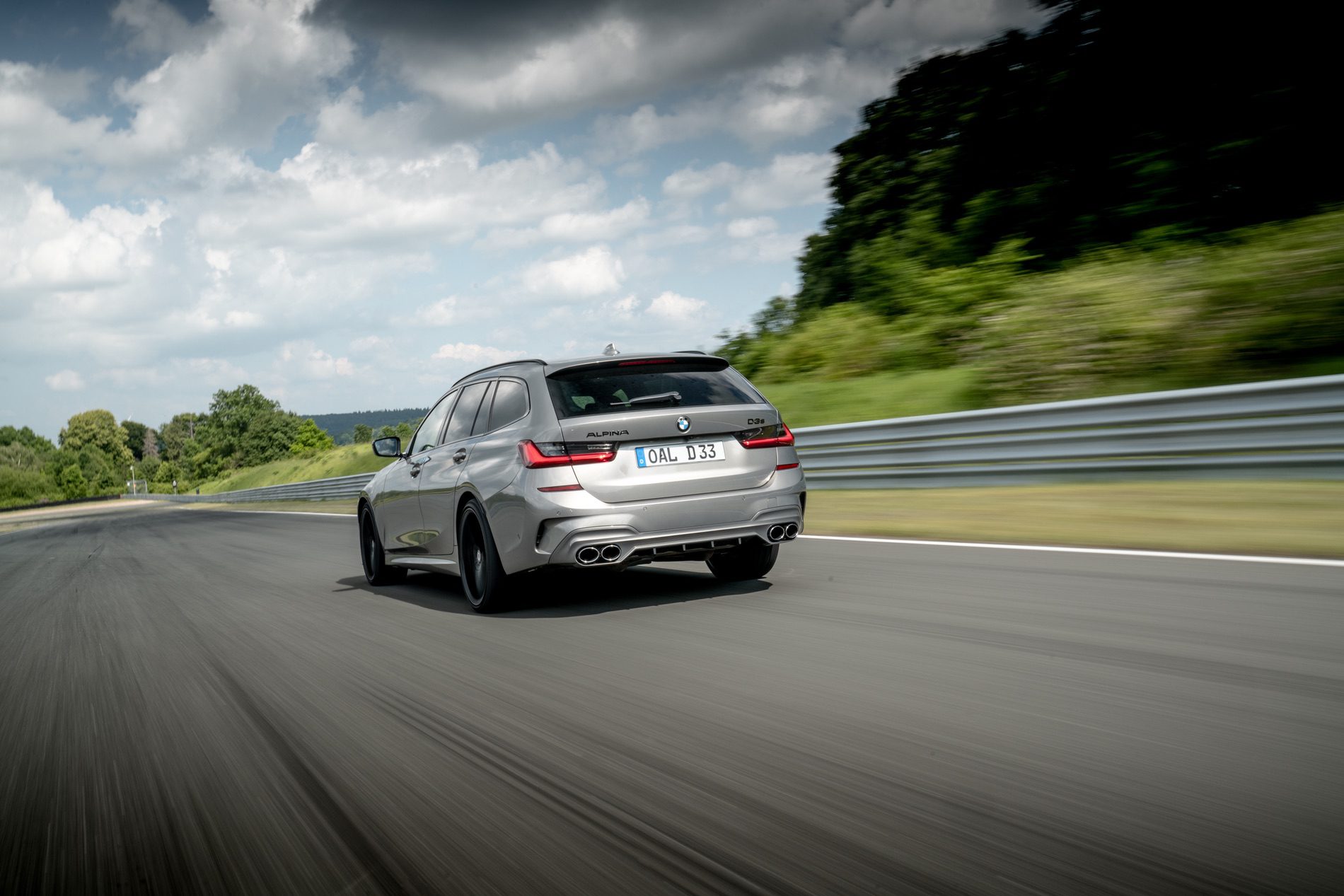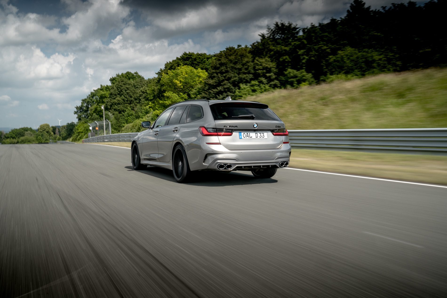 The ALPINA D3 S Sedan accelerates from standstill to 100 km/h in 4.6 seconds, while the Touring does the 0-100 km/h sprint in 4.8 seconds. The ALPINA D3 S Touring hits a top speed of 270 km/h, whereas the Sedan boasts 273 km/h.