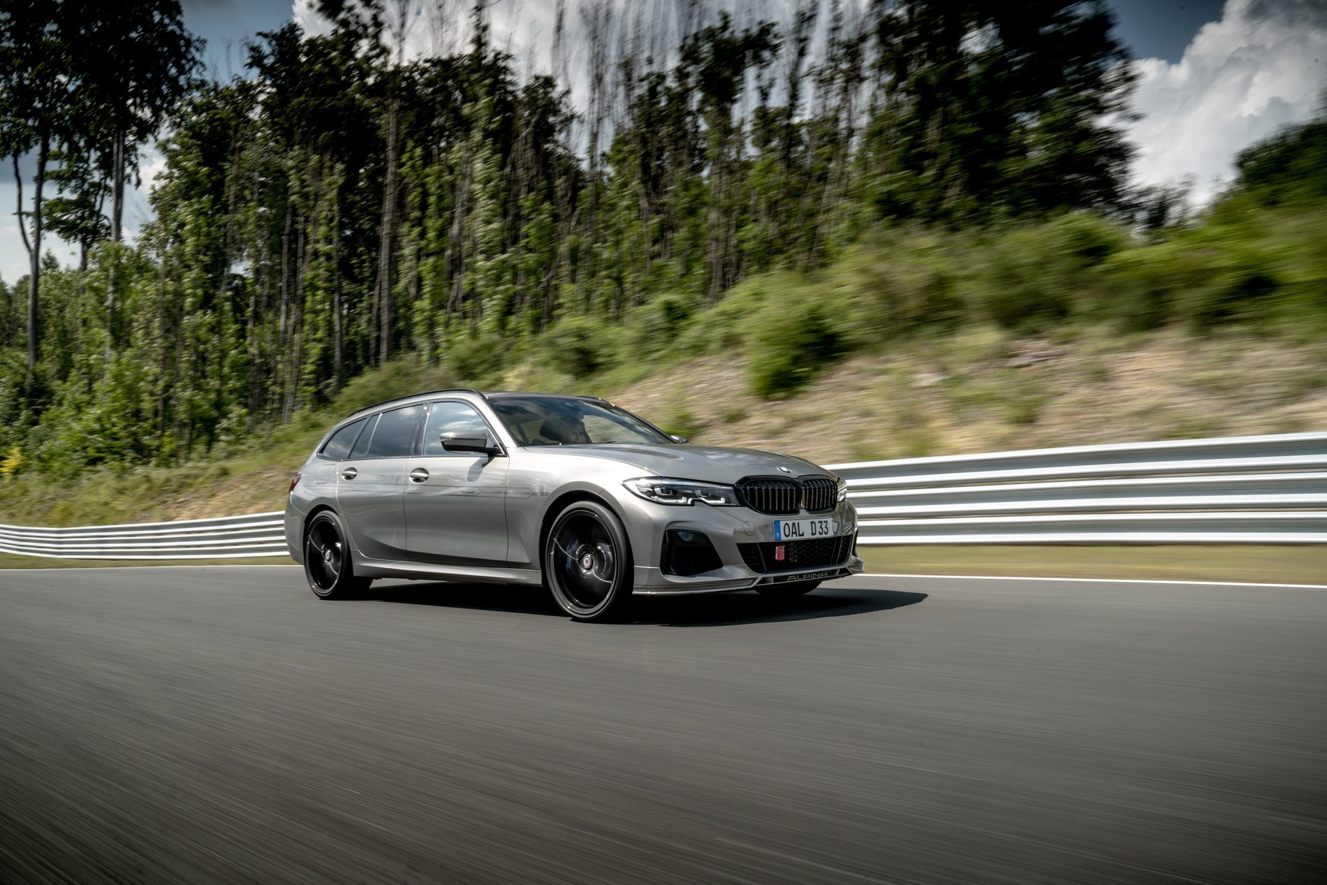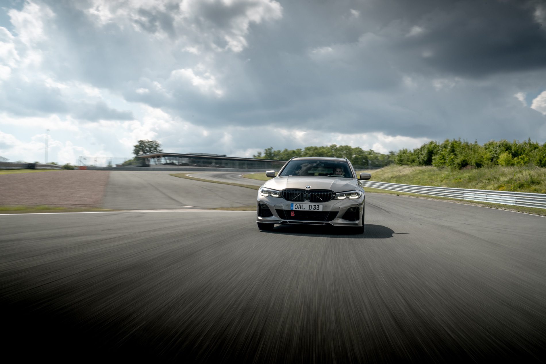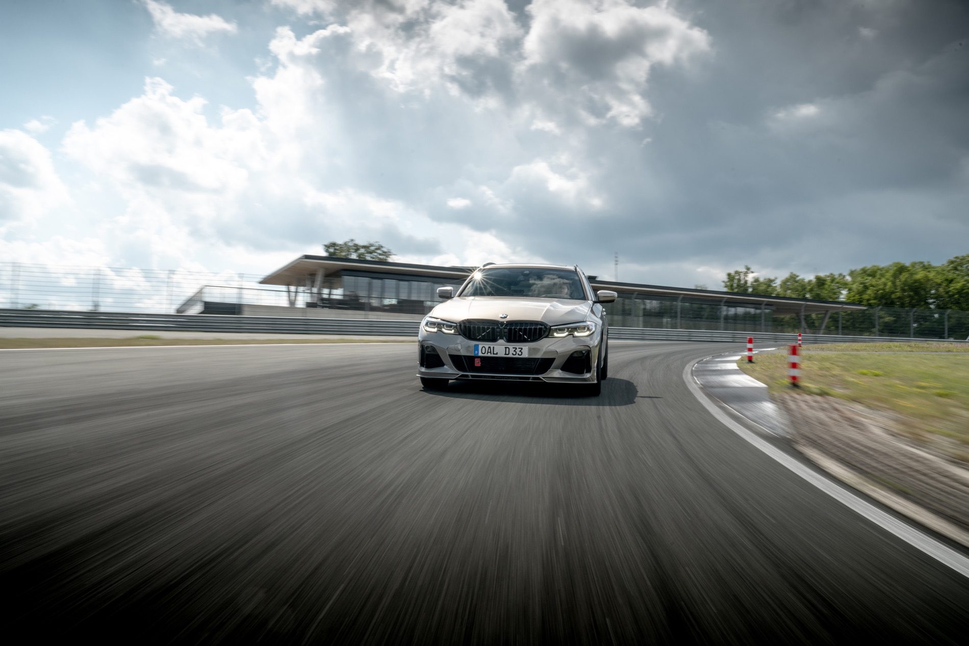 The ALPINA D3 S Sedan accelerates from standstill to 100 km/h in 4.6 seconds, while the Touring does the 0-100 km/h sprint in 4.8 seconds. The ALPINA D3 S Touring hits a top speed of 270 km/h, whereas the Sedan boasts 273 km/h.