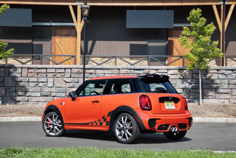 In these photos, we see what looks like a slightly updated MINI John Cooper Works. We can tell it’s the sportier JCW model, rather than a standard Cooper, due to its dual center-mounted exhausts, sportier front bumper and the fact that there’s a John Cooper Works badge on it that’s been taped over…