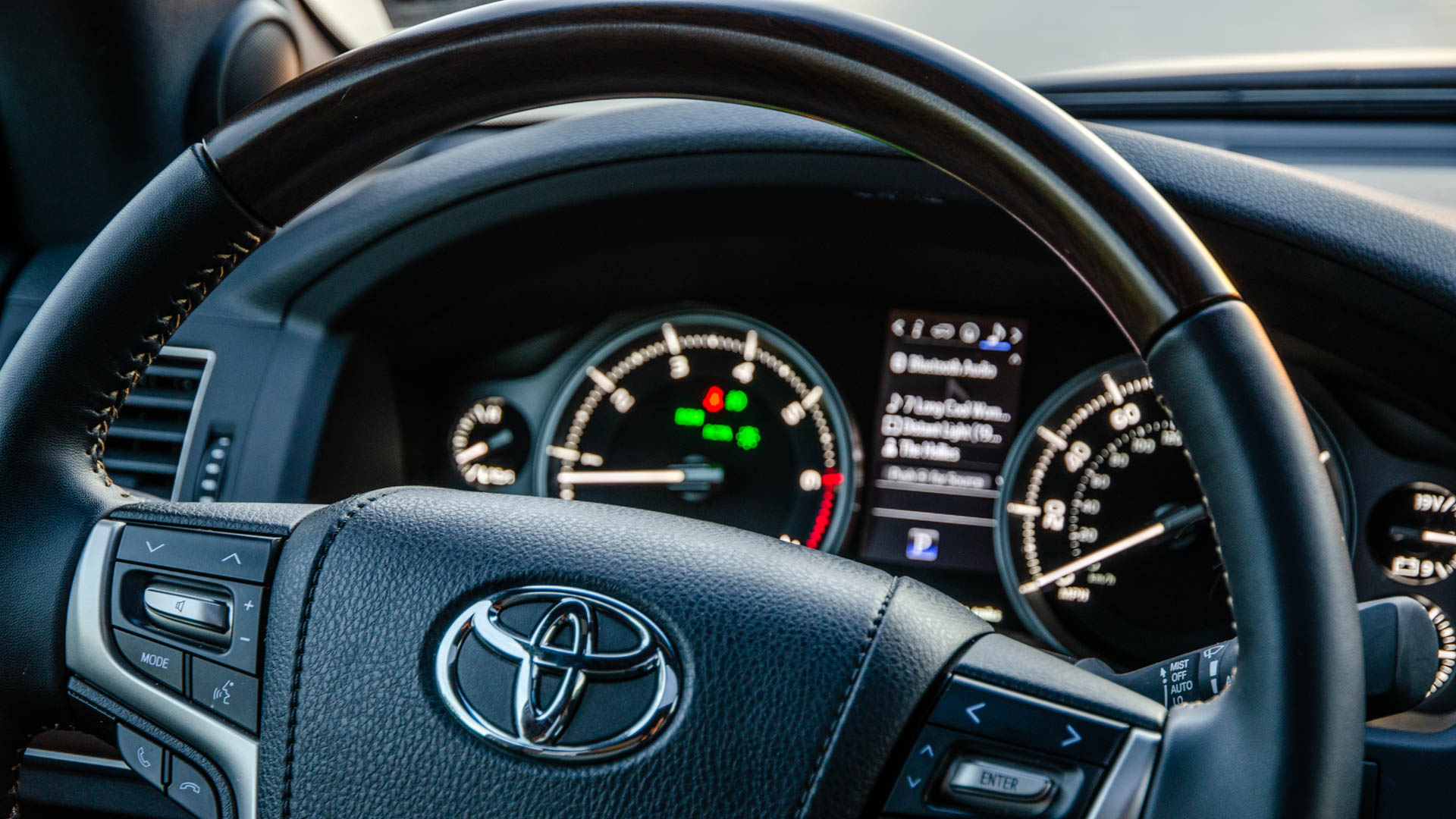 For essentially $90,000, you’d expect the Land Cruiser to have a gorgeously appointed cabin. It does not. Sure, it’s nice enough; it has comfy leather seats which are heated and air-conditioned, touchscreen infotainment and even some wood trim on the steering wheel.