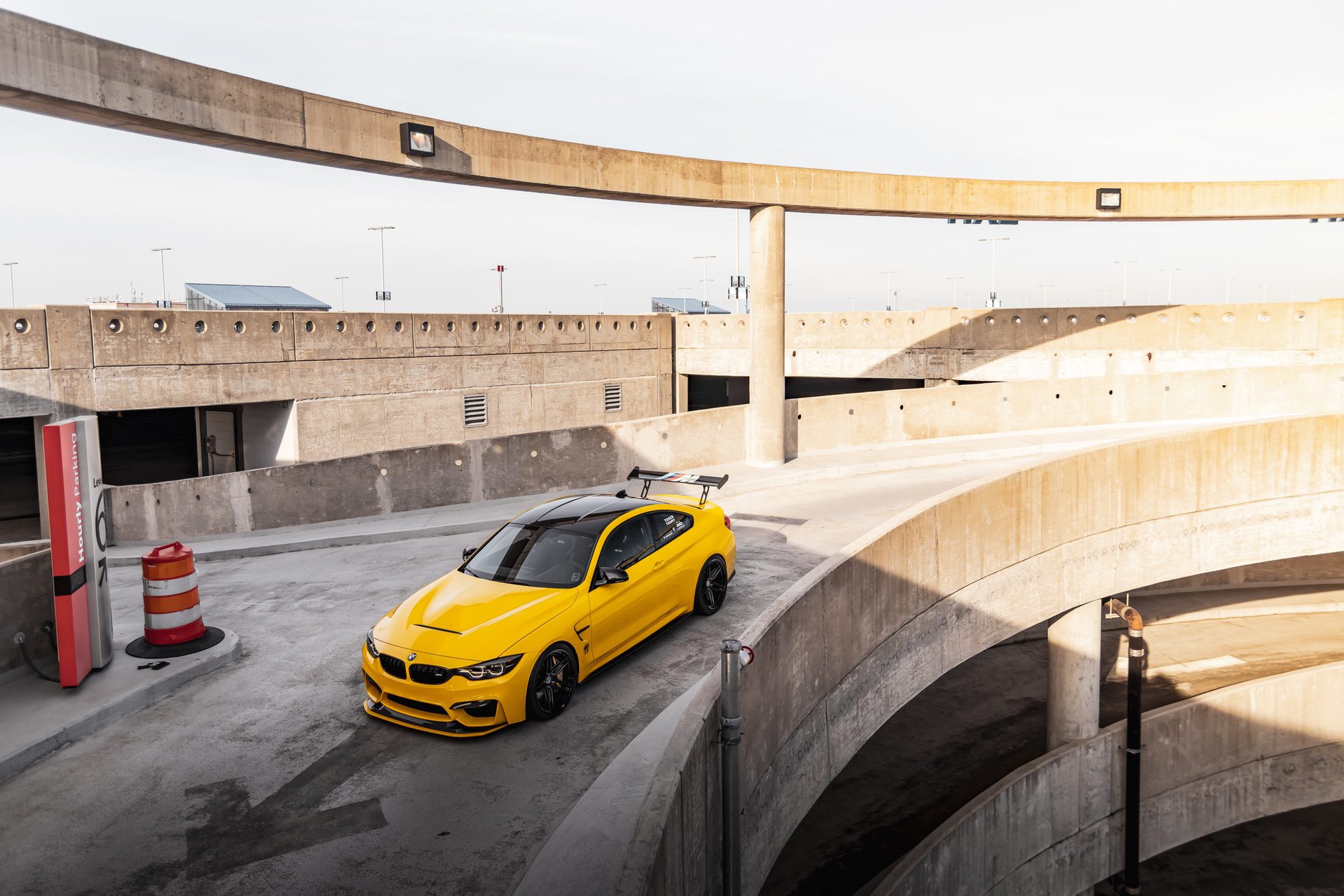 Let’s start with the wrap. This BMW M4 GTS was wrapped in a beautiful Yellow Avery Dennison vinyl, but not before getting a full protection film from XPEL. To enhance its looks even more, Japanese tuner 3D Design contributed with Carbon Fiber Side Skirts. In the rear, the GTS diffuser comes from Vorsteiner, while the RKP GT4 Rear Wing Risers are custom painted by IND Distribution.