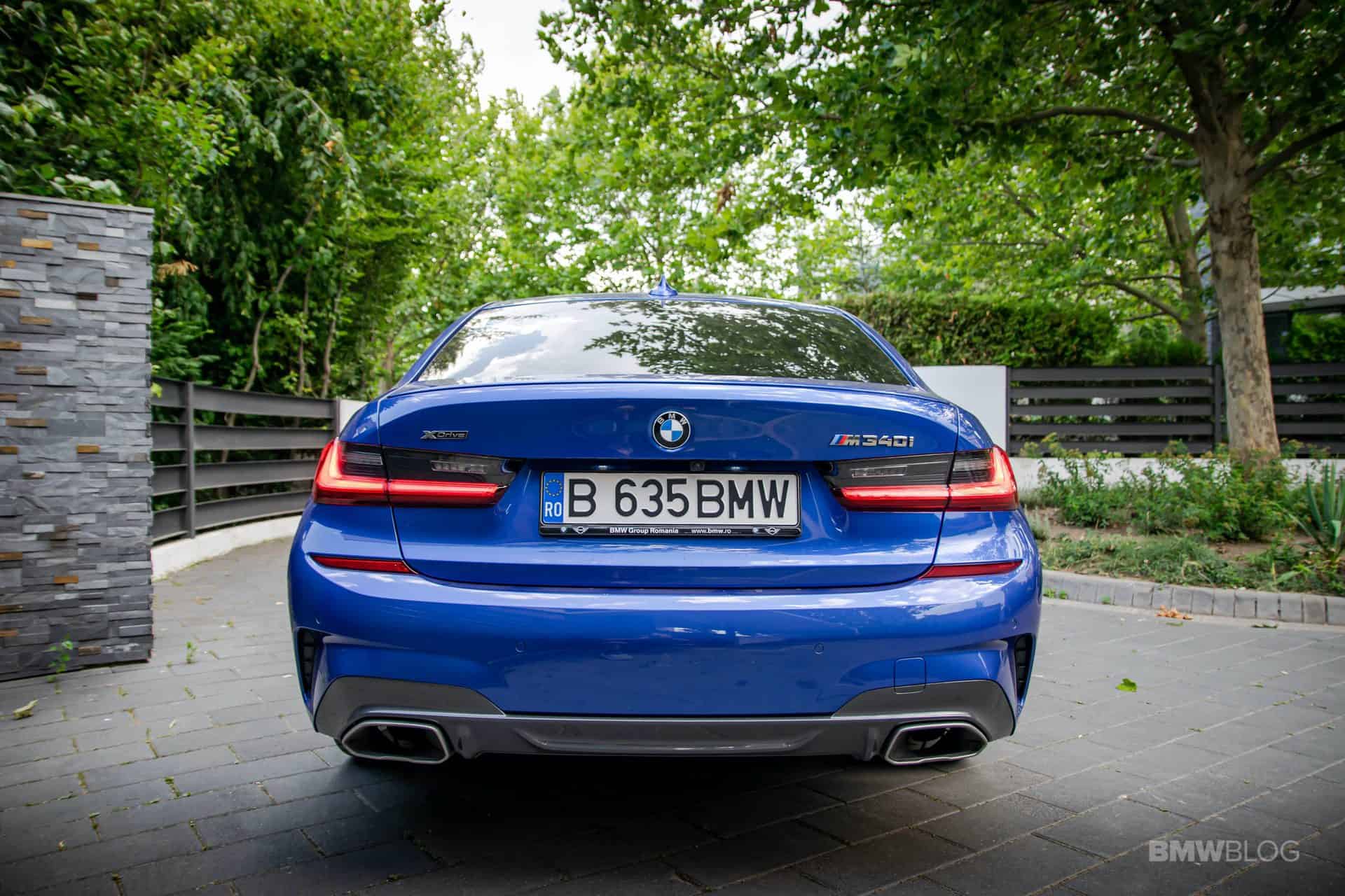 Moving to the sides you might also notice the Cerium Grey side mirror covers and wheels. The M340i rides 10 mm lower due to its specifically tuned suspension. More on that later. Round the back the M340i badge is a dead giveaway, along with the hexagonal exhaust pipe trims.