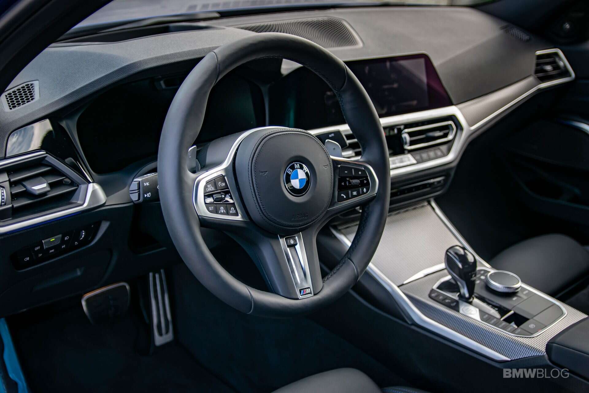 Open the doors and step inside and more details will catch your eye. The door sills feature the M340i badge both up front and in the back. The instrument cluster also props the badge in between the speedometer and tachometer.