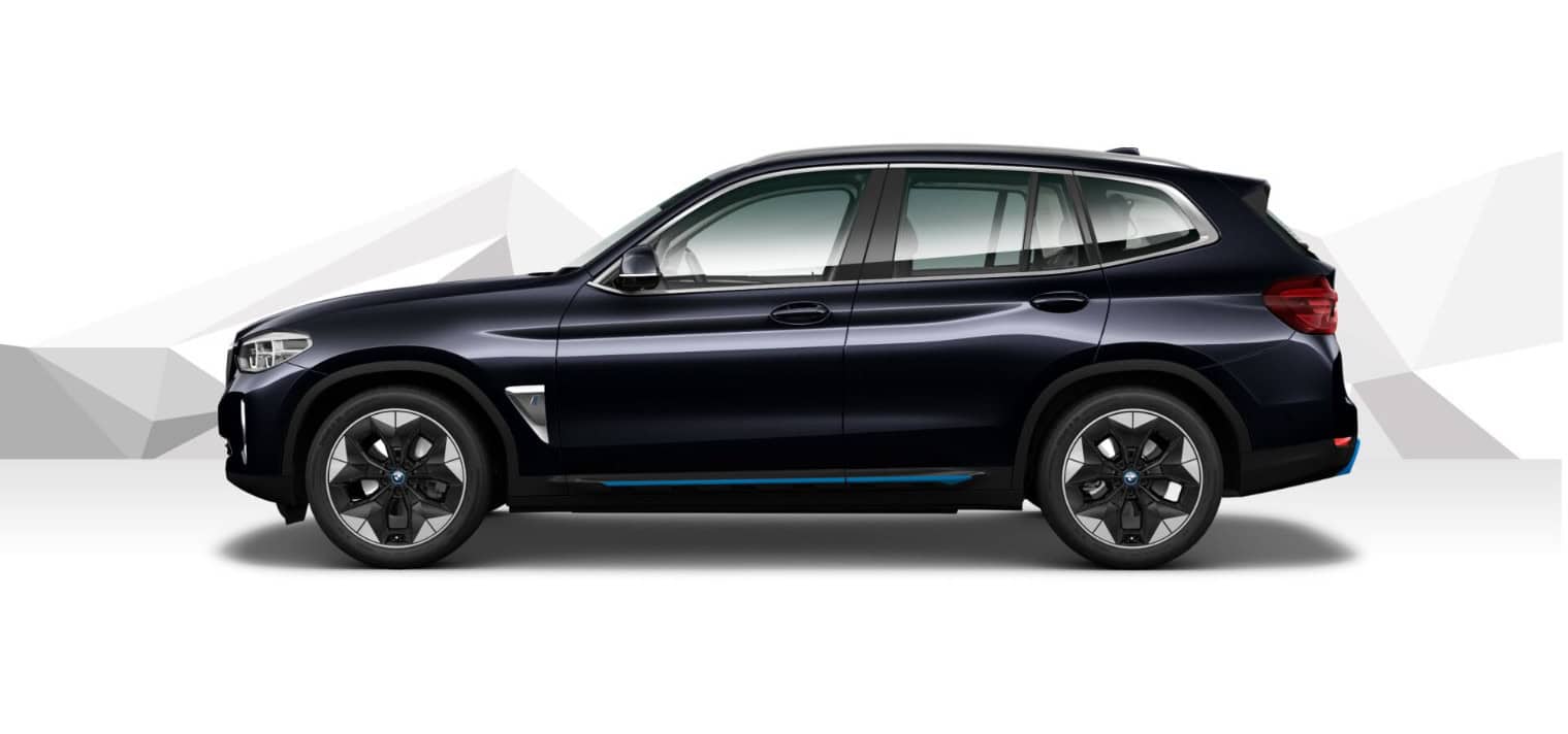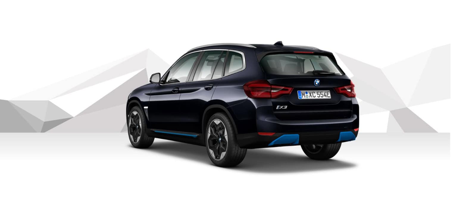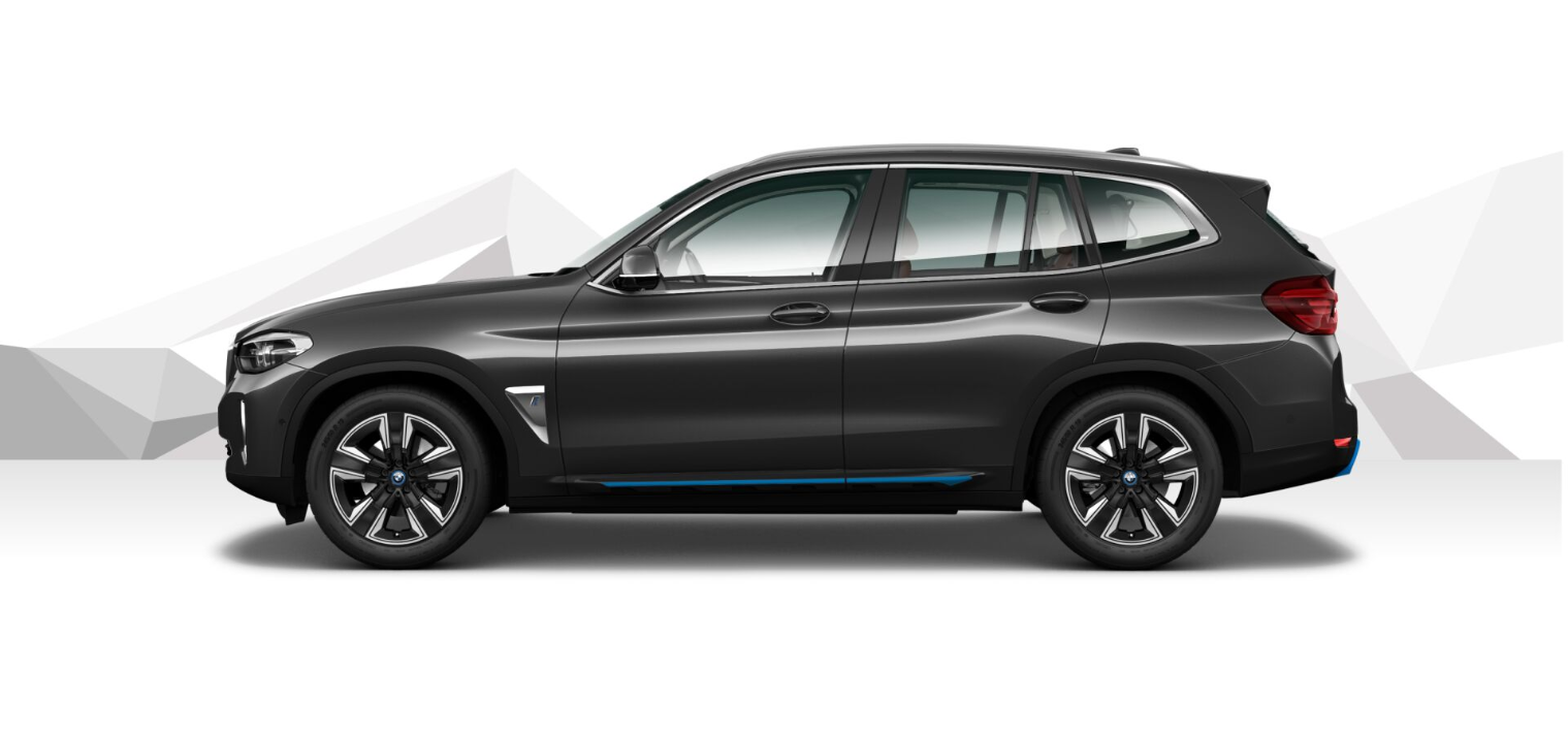 iX3 Impressive in Carbon Black metallic, with standard BMW i blue accents