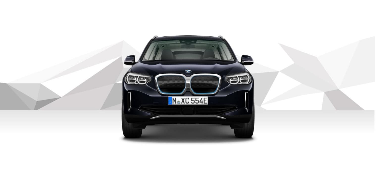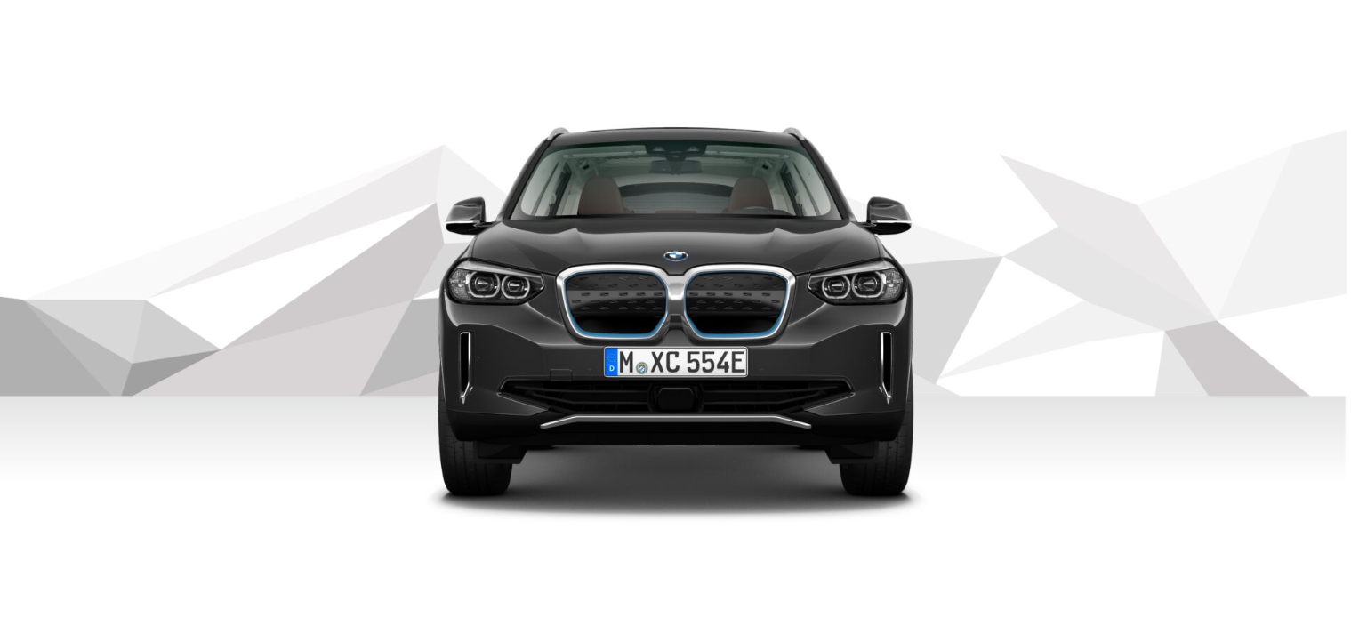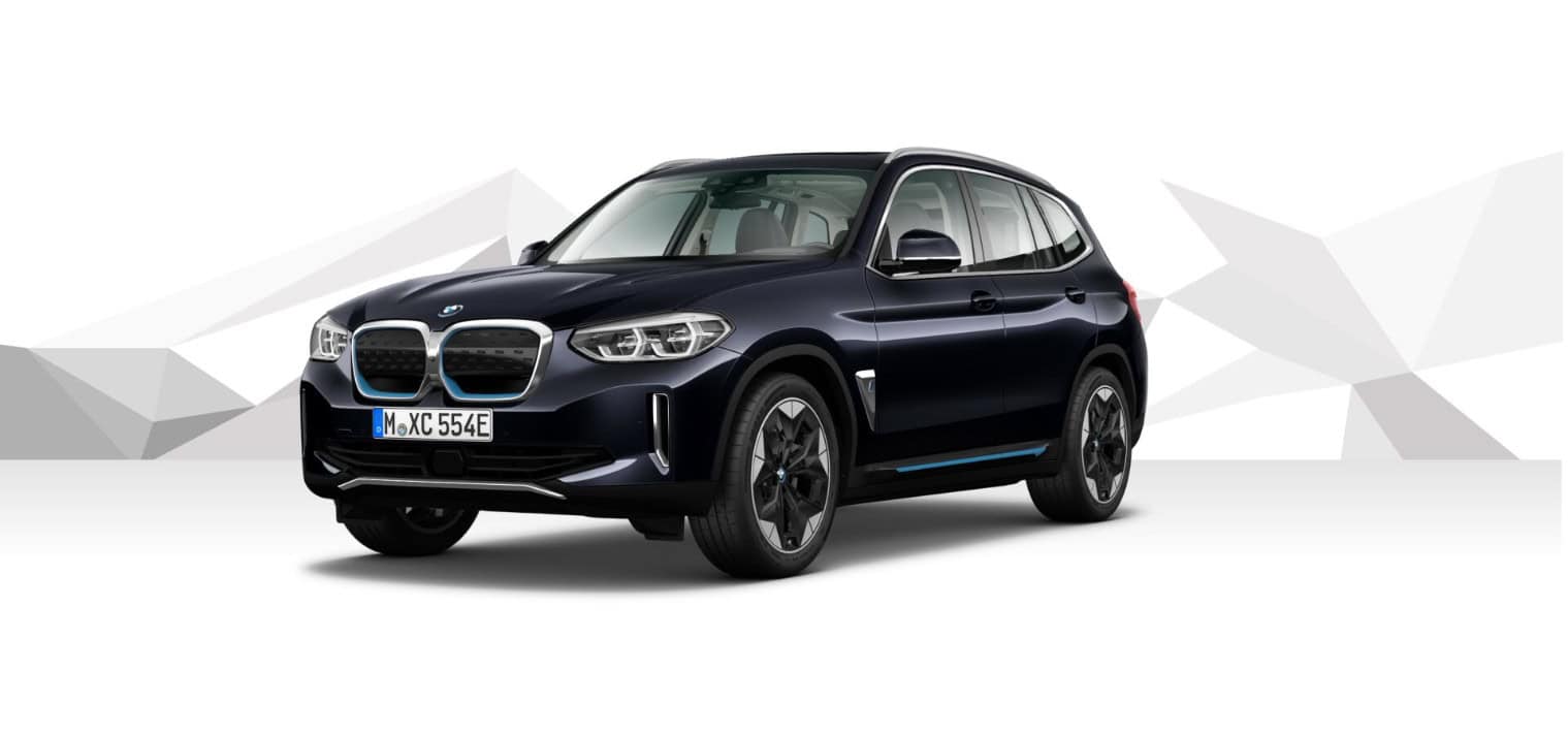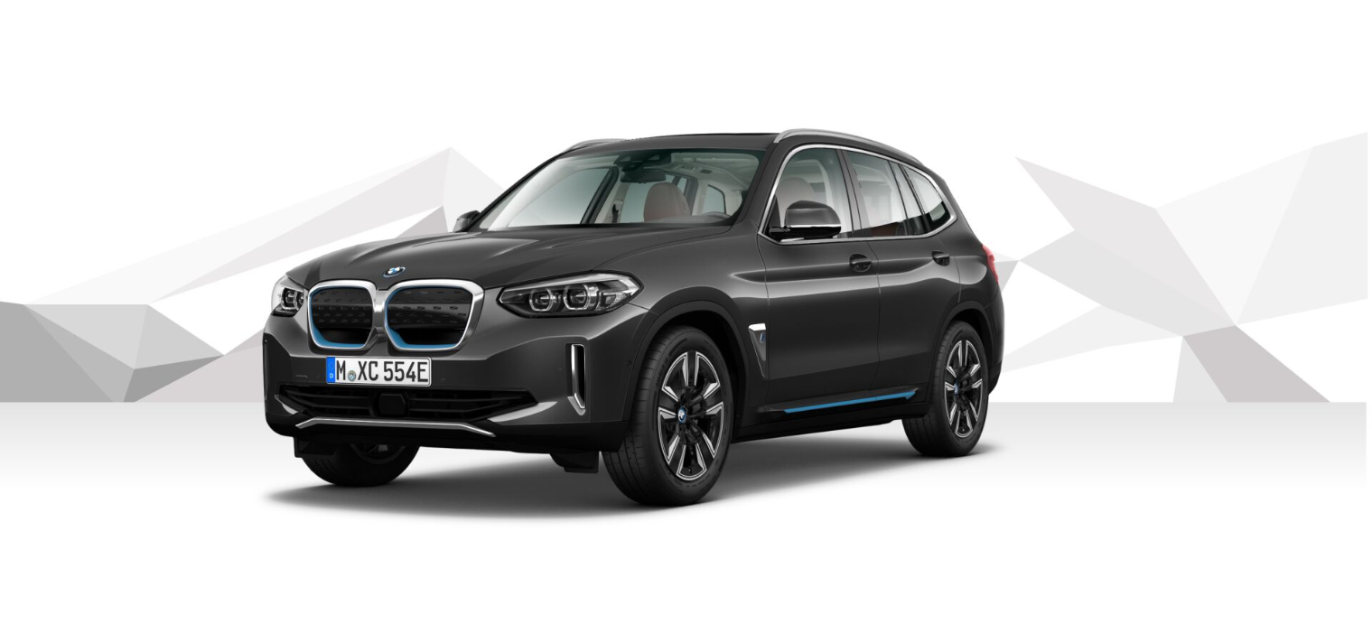 iX3 Impressive in Carbon Black metallic, with standard BMW i blue accents