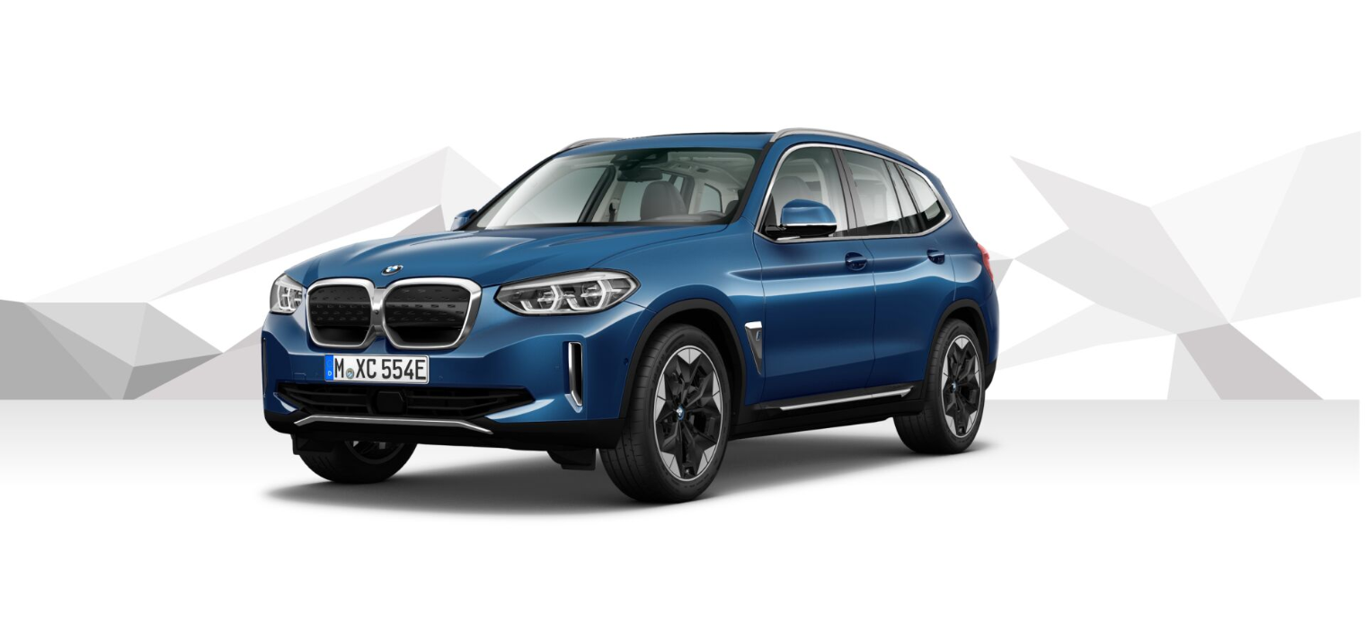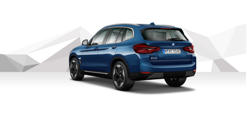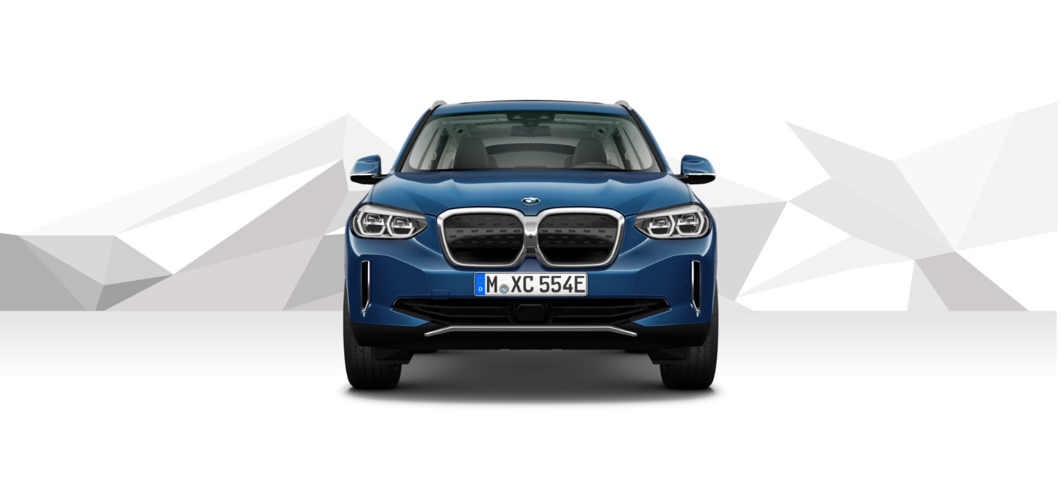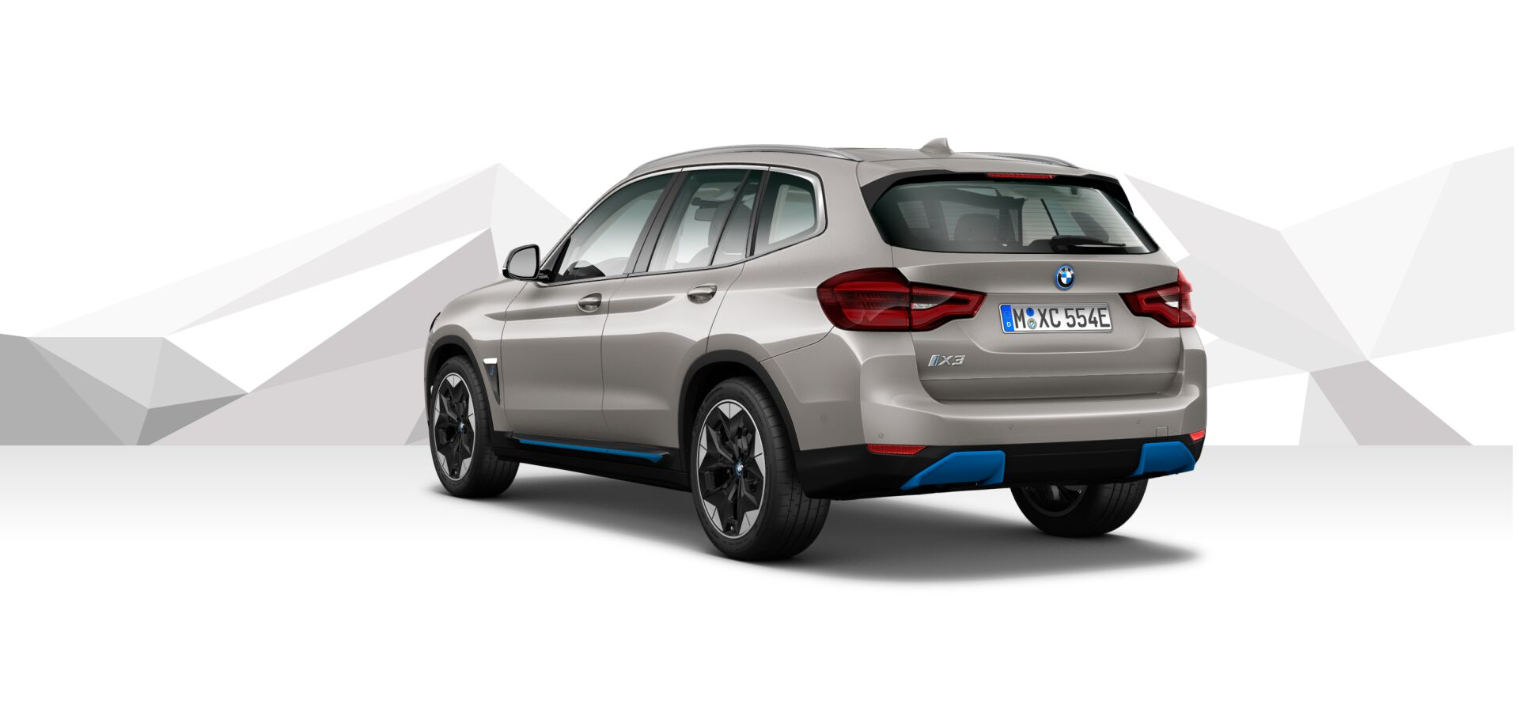 iX3 Impressive in Phytonic Blue metallic, with automatically deleted BMW i accents