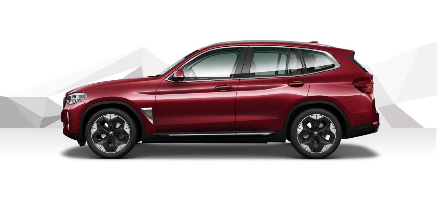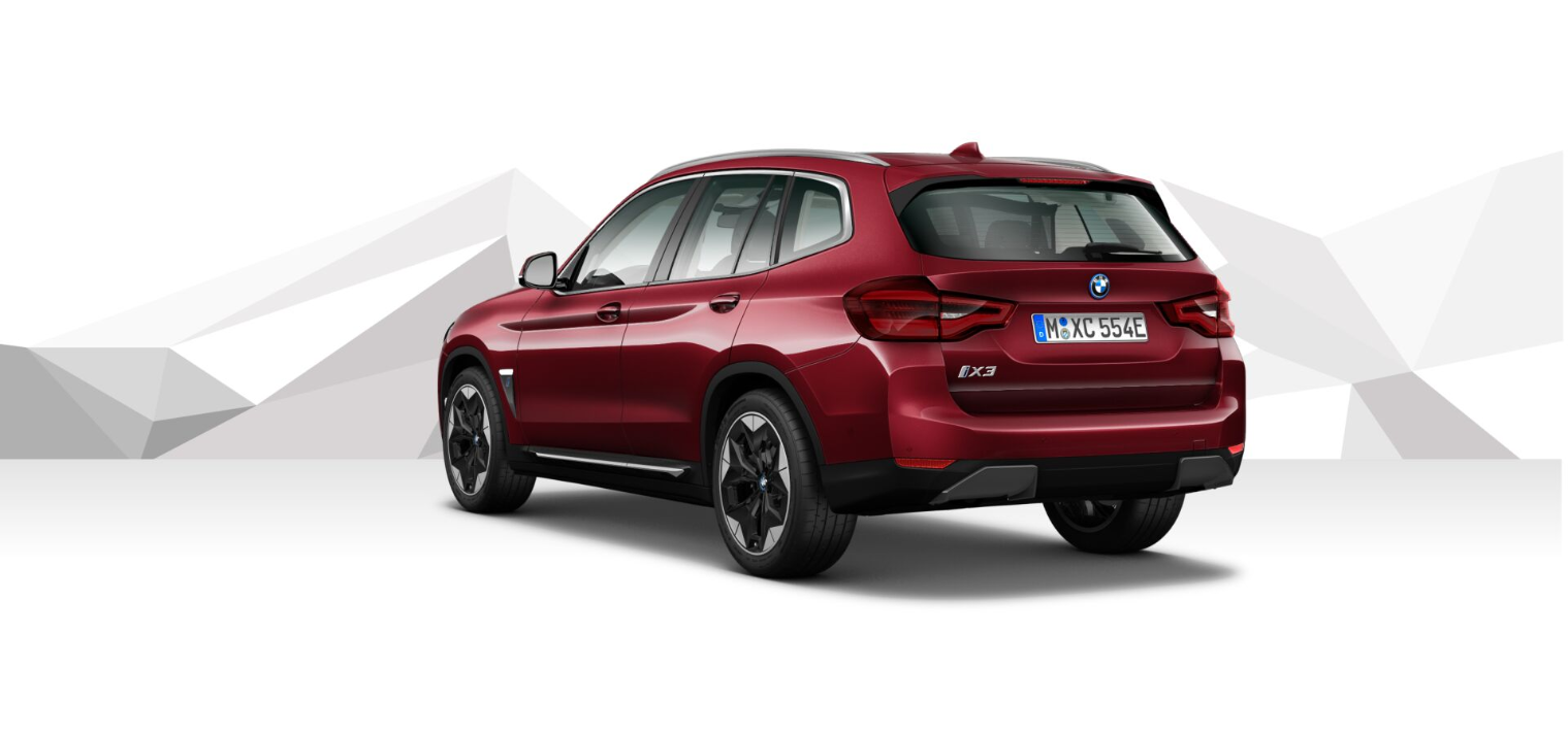 iX3 Impressive in Piemont Red metallic, with automatically deleted BMW i accents