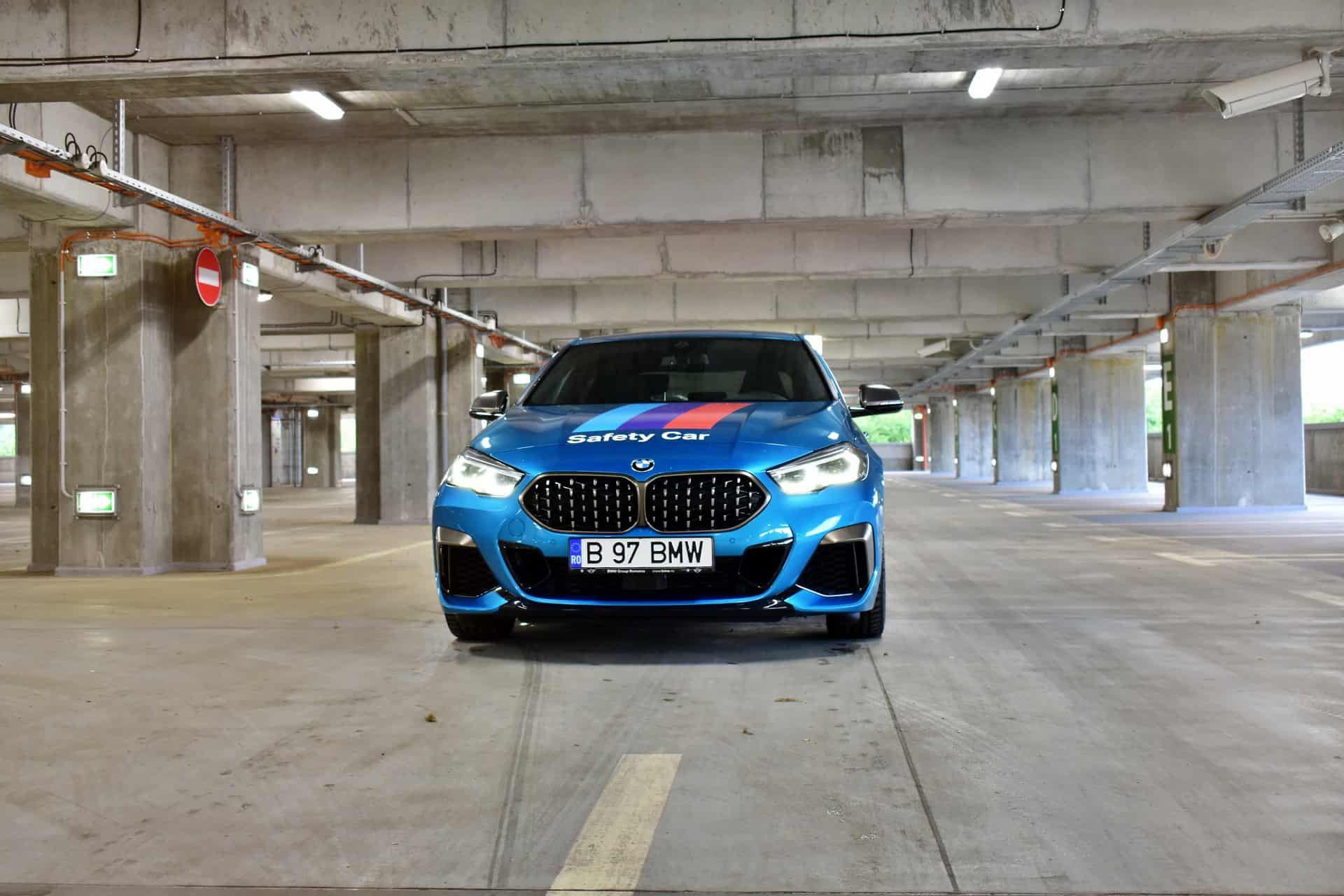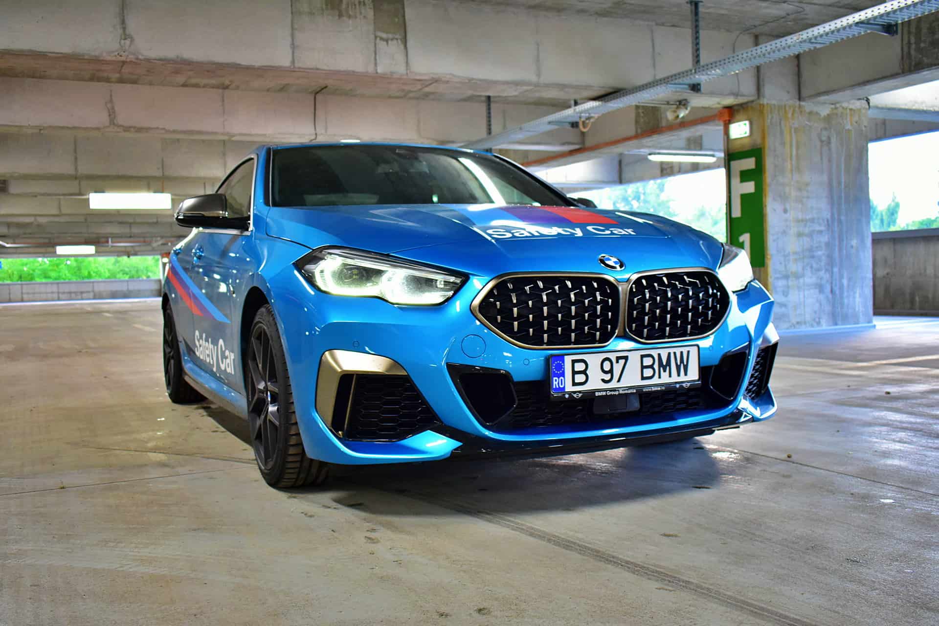The BMW M235i xDrive test car was finished in a stunning Snapper Rocks Blue metallic color. Together with the usual Cerium Grey exterior accents for the low-end M models, it really gives the M235i a powerful and sporty appearance. Furthermore, as this specific model was due to serve as Safety Car during an internal racing competition, the M235i was also specced with a series of M stripes and Safety Car decals.
