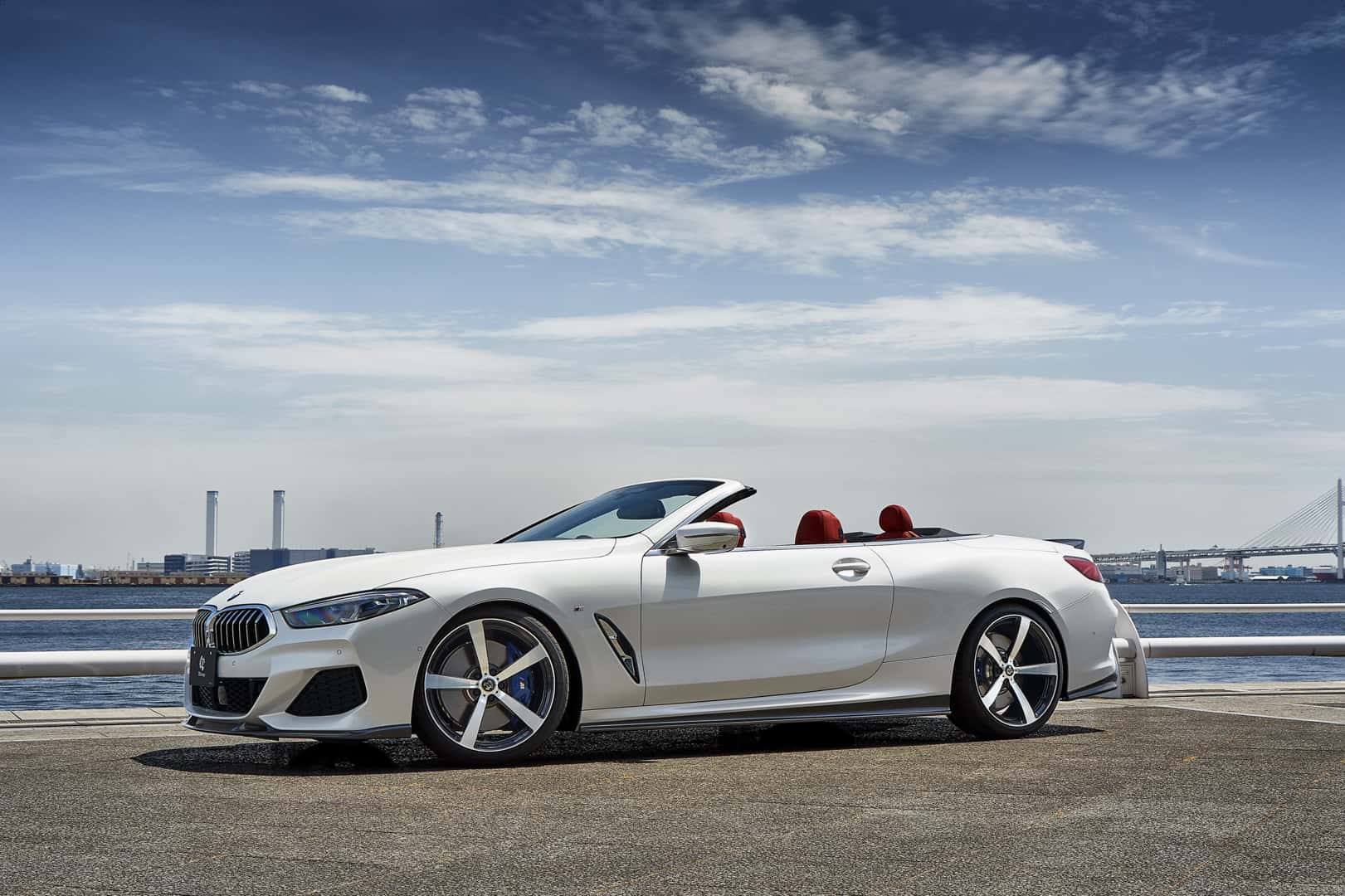 All in, there’s a front splitter, side skirts, rear diffuser and rear lip spoiler, all in carbon fiber. All of which are also available for the BMW 8 Series Coupe, except for the rear lip spoiler, as that’s Convertible-only option. It also gets a set of 20″ forged wheels in these photos.
