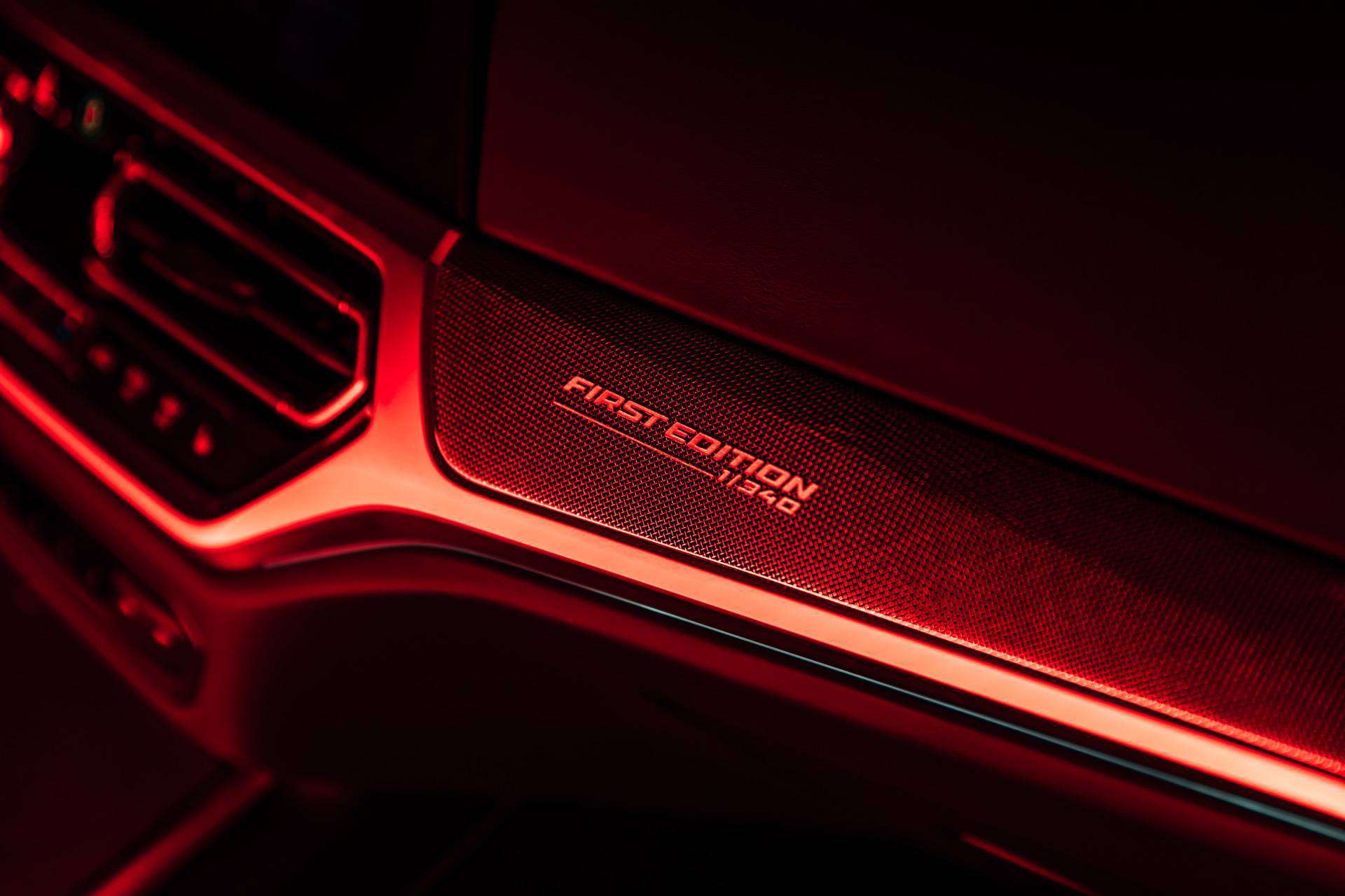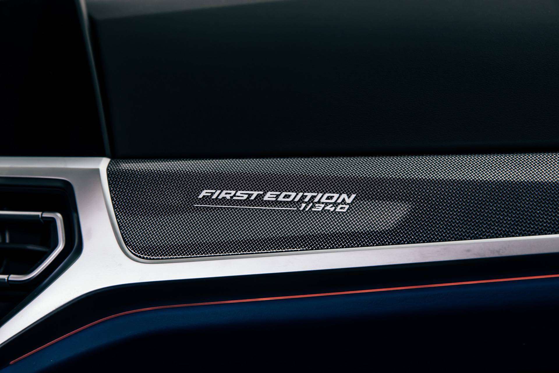 The leather-covered dashboard, the seat belts with M stripes and the First Edition lettering integrated into the carbon interior trim round off the exclusive appearance.