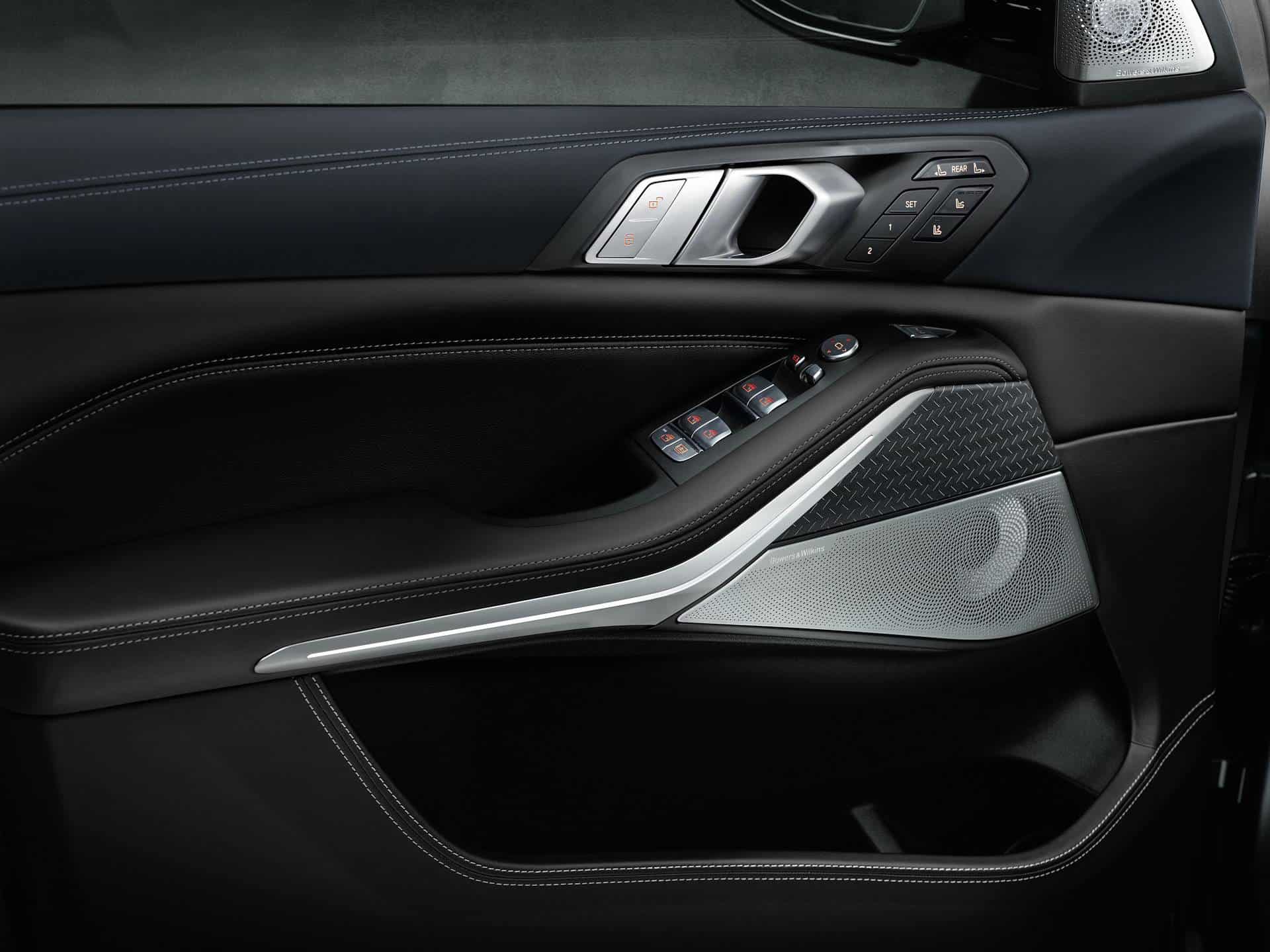 The interior, which can be ordered in either a six or seven passenger configuration, also receives exclusive touches to set this X7 apart from the rest. BMW Individual Full Merino Leather in two-tone Night Blue/Black with contrast stitching covers the seats.