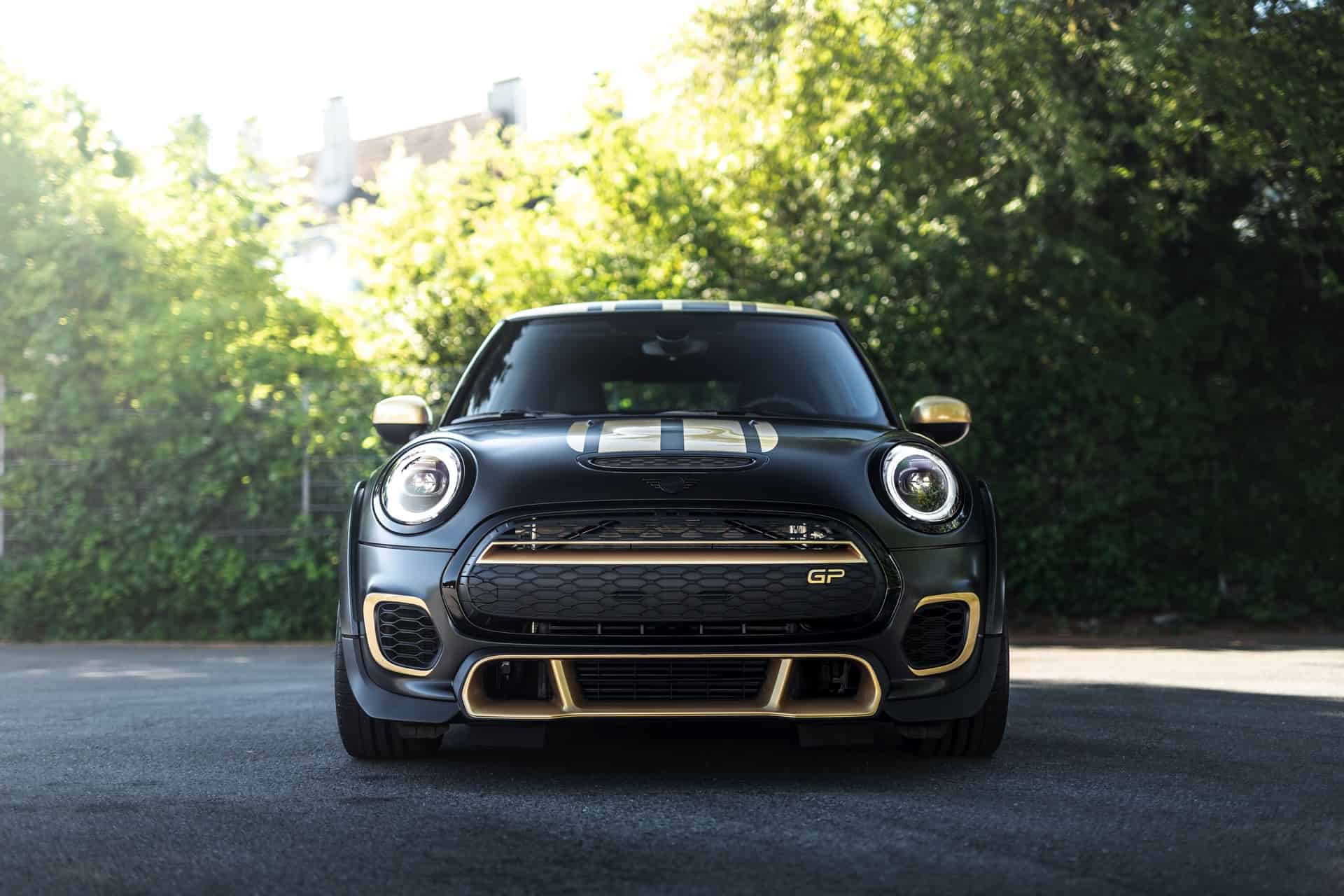 To match, the roof, the exterior mirrors and even the small GP logo on the rear are kept in gold, which creates a particularly strong contrast with the matte black foiling of the rest of the vehicle.