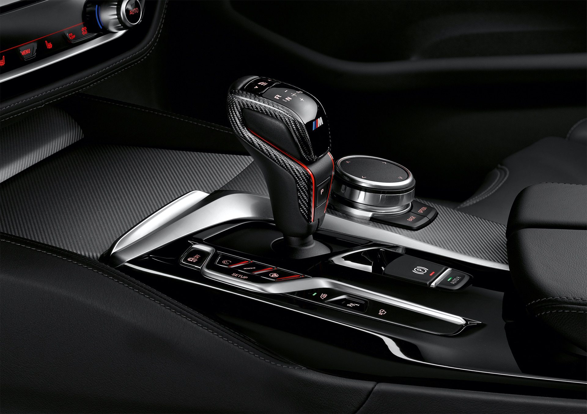 The M Performance carbon shift paddles are also available for all other steering wheels. The carbon M Performance gear shift trims are exclusive to the BMW M5 and the BMW M5 Competition.
