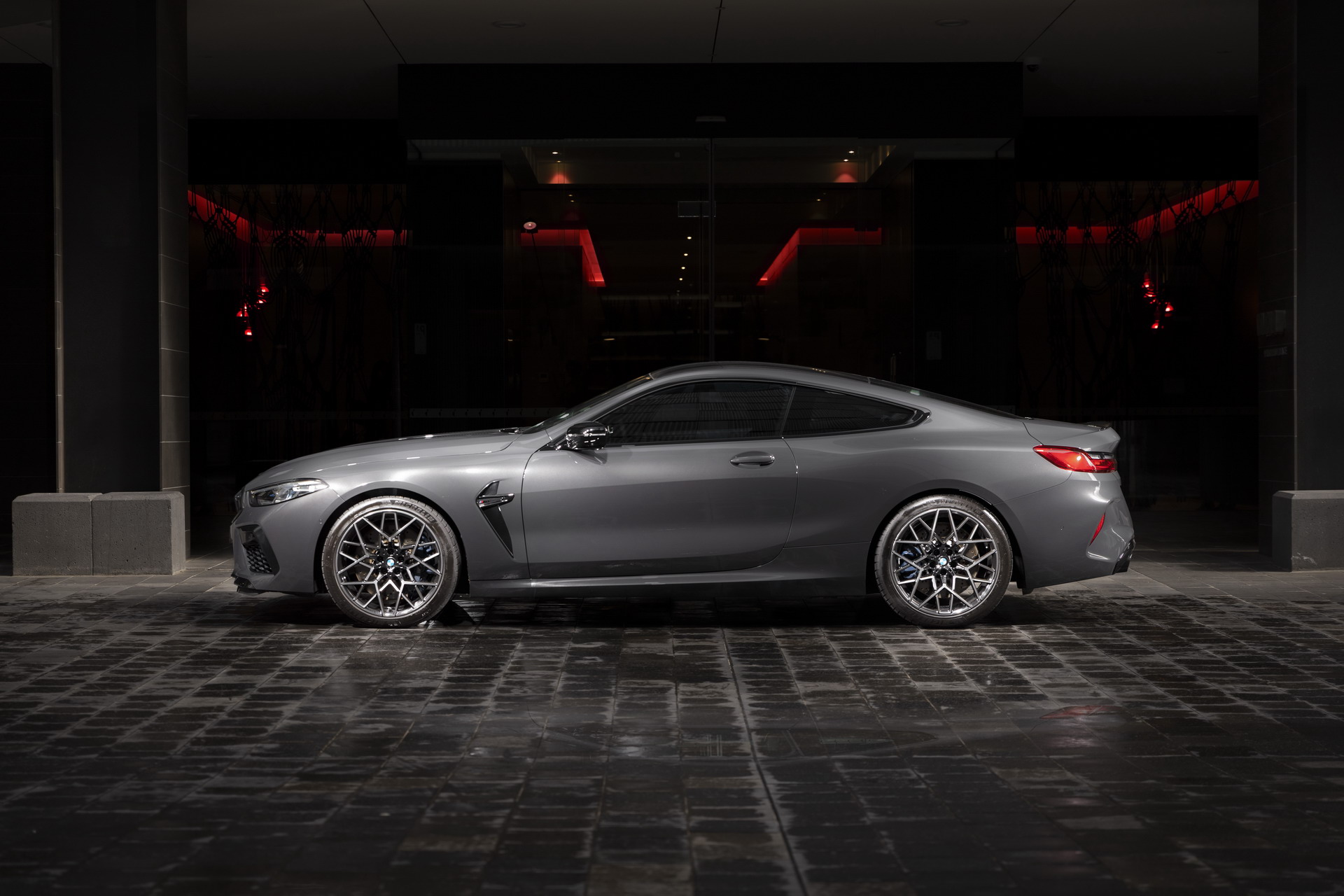 The 4.4-liter V8 engine releases a peak torque of 750 Nm (553 lb-ft), available between 1,800 and 5,800 rpm. The M8 Competition Coupe achieves a top speed of 250 km/h (155 mph), electronically limited.