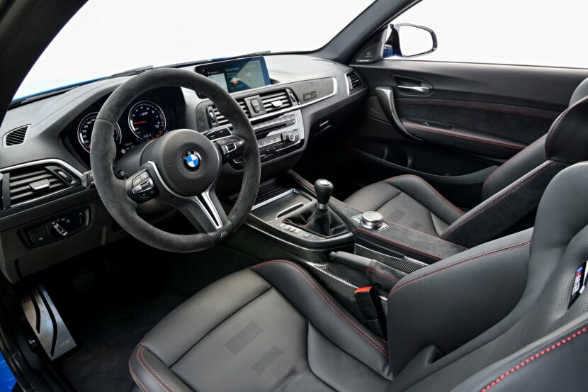 Under the hood, there’s a 3.0 liter twin-turbocharged I6, the same one as in the M2 Competition, except it makes more power here. The BMW M2 CS gets the same 444 horsepower as the BMW M4 Competition Pack and, thankfully, can be paired with a six-speed manual (though, it gets a seven-speed DCT in this video). To keep weight down, it gets a carbon fiber hood, a carbon trunk lid, a carbon fiber roof (it’s the only 2 Series of any kind to get such a thing) and some lightweight Alcantara inside the cabin.