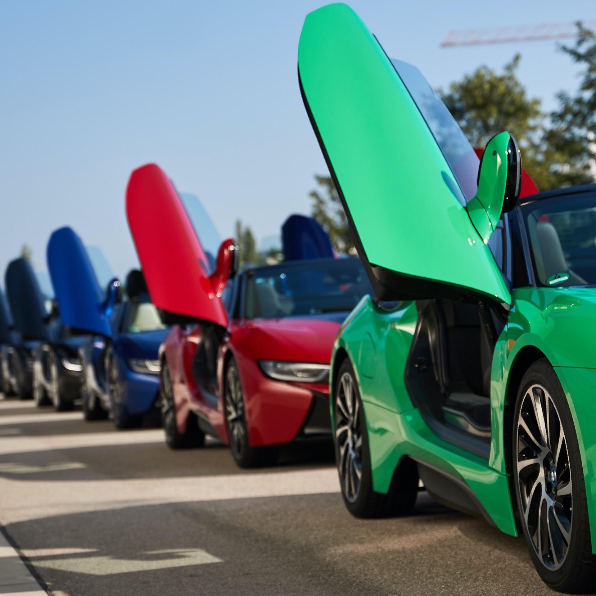 The special BMW i8 Individual models also attracted a lot of curious glances when they were handed over to the BMW Welt in Munich. And that’s hardly a surprise considering they come painted in such extroverted colors, like the Aventurine Red, Austin Yellow, Snapper Rocks Blue, Birch Green, British Racing Green, Le Mans Blue or Sunset Orange.