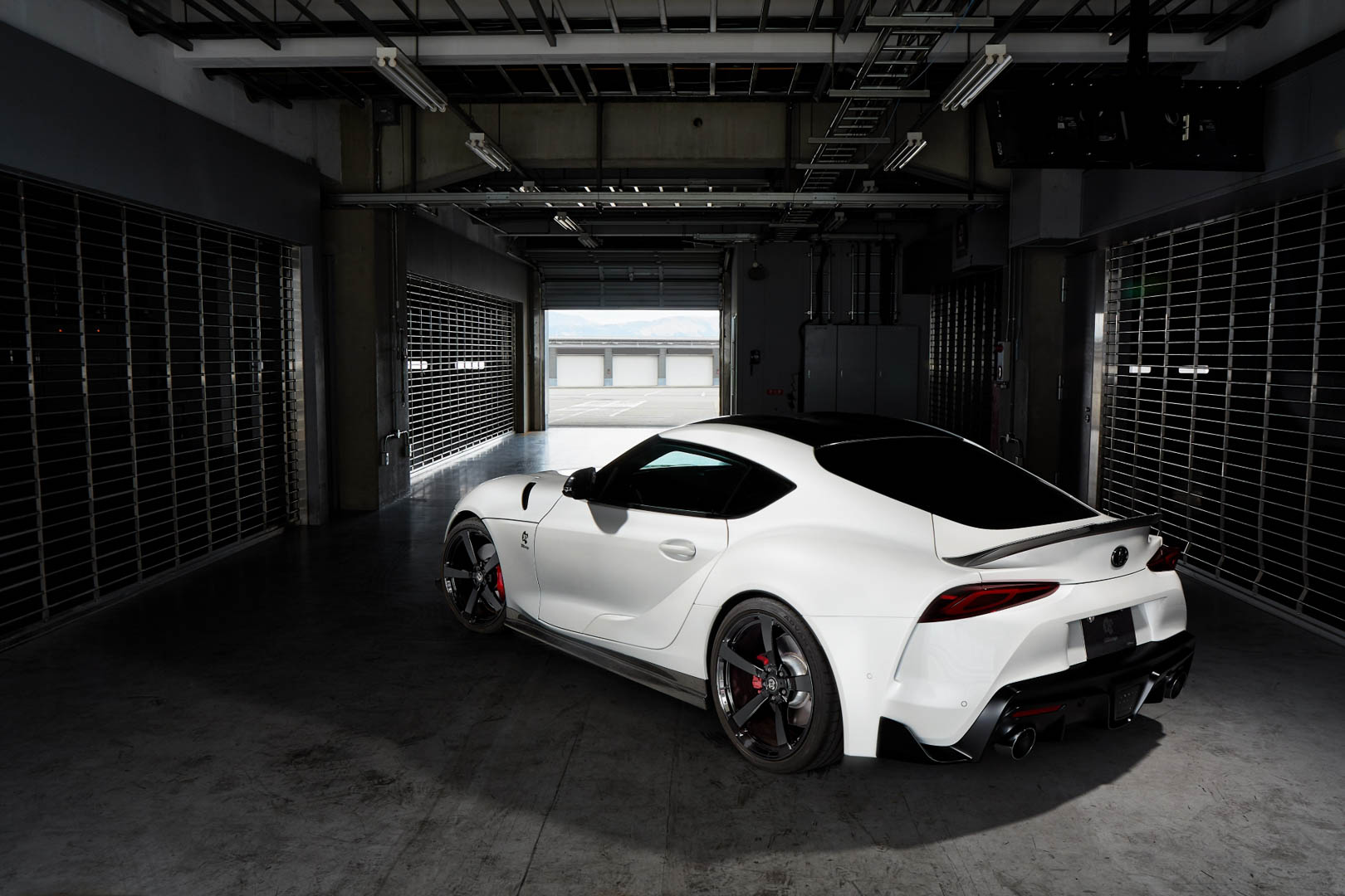 For the exterior, the 3D Design Toyota Supra gets a lot of carbon fiber. The front splitter, a perfectly contoured rear lip spoiler, a rear diffuser and new side skirts are all made from carbon. It also gets massive dual exhausts, new five-spoke wheels and some interior changes. The latter of which consist of a newly wrapped steering wheel, which gets red leather, aluminum pedals and carbon fiber versions of 3D Design’s paddle shifters. Personally, I think 3D Design’s aluminum paddles are better looking, and the best in the business, but the carbon ones look cool, too.