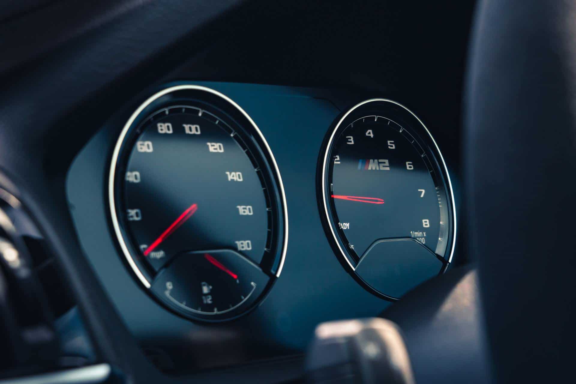Inside, the BMW M2 CS feels as lightweight as it is. So it gets carbon fiber door pulls and door panel trim, as well as Alcantara everywhere and seemingly miles of contrast stitching. The center console is also made entirely of carbon fiber, which reduces weight by 50-percent over the standard car’s (around 6 lbs/2.7 kg).
